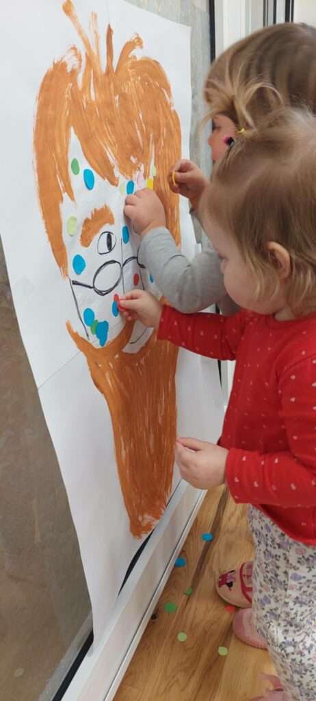 Tego dnia nie mogło zabraknąć kropeczkowych zabaw- przyklejania kolorowych piegów naszym znajomym bohaterom. ![]()