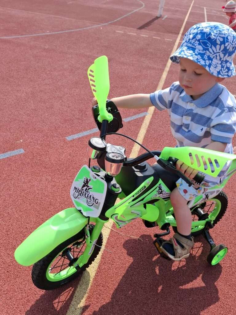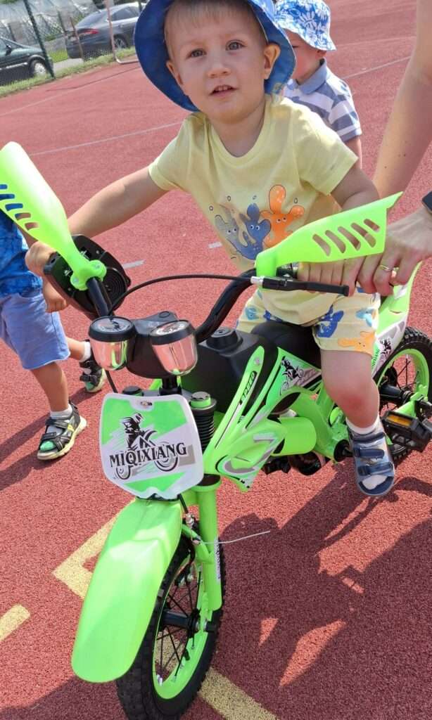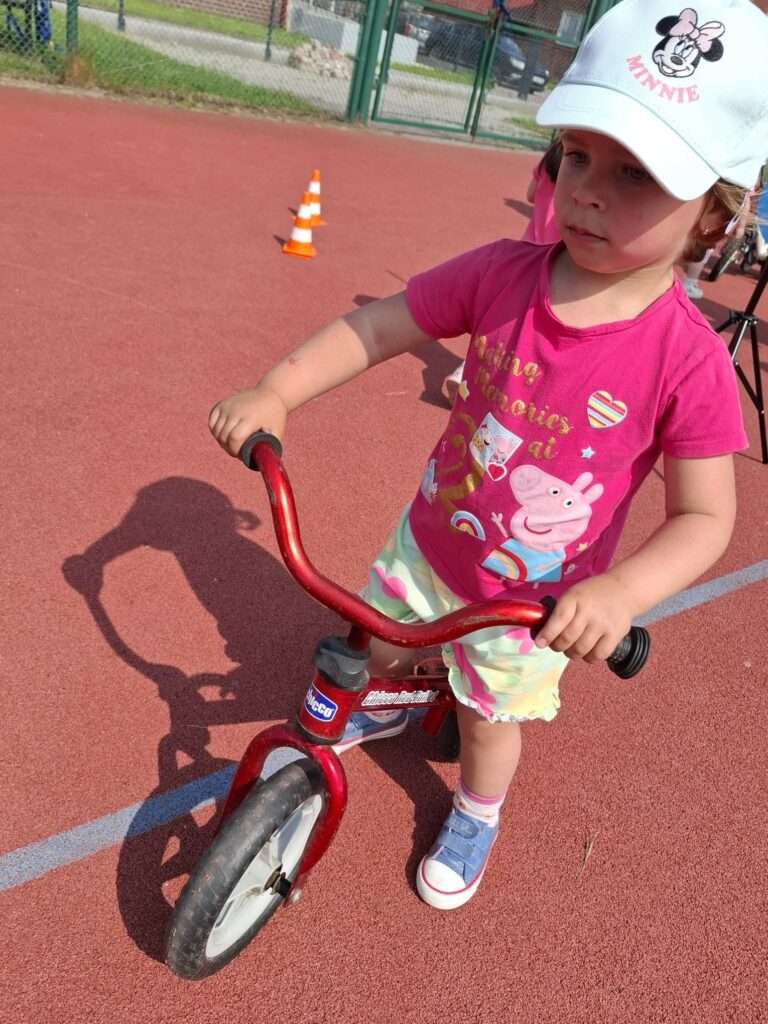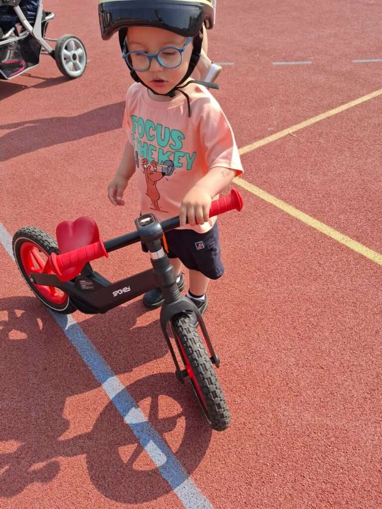 Nasze maluchy zamieniły się w małych rowerzystów. Na boisku czekał na nich wyjątkowy tor, po którym mogły poćwiczyć jazdę na rowerkach. ![]()