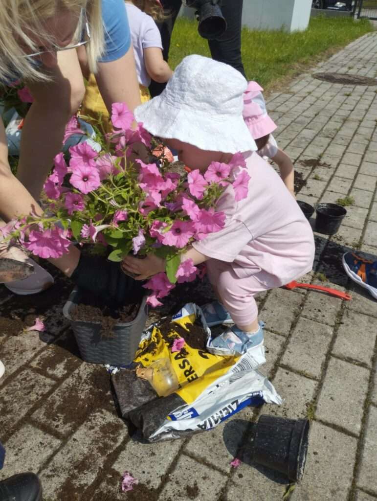 W ramach zajęć przyrodniczych sadziliśmy kwiaty do donic.