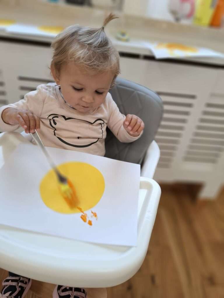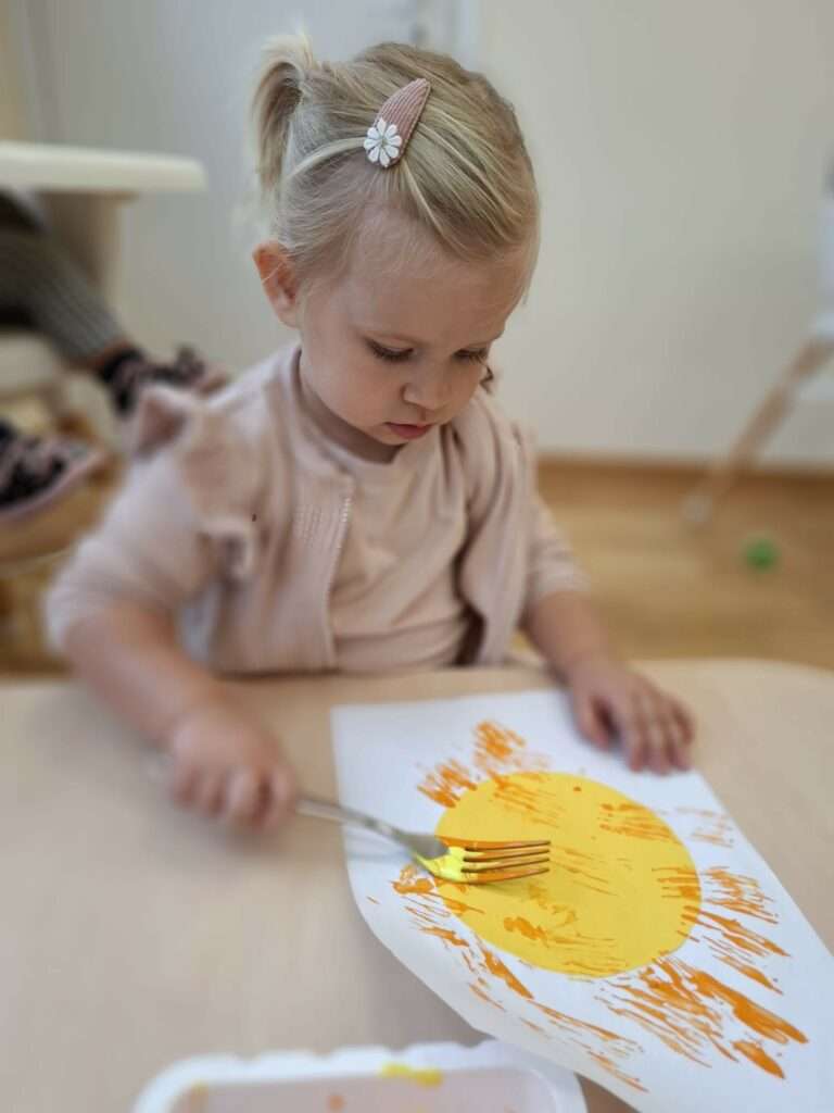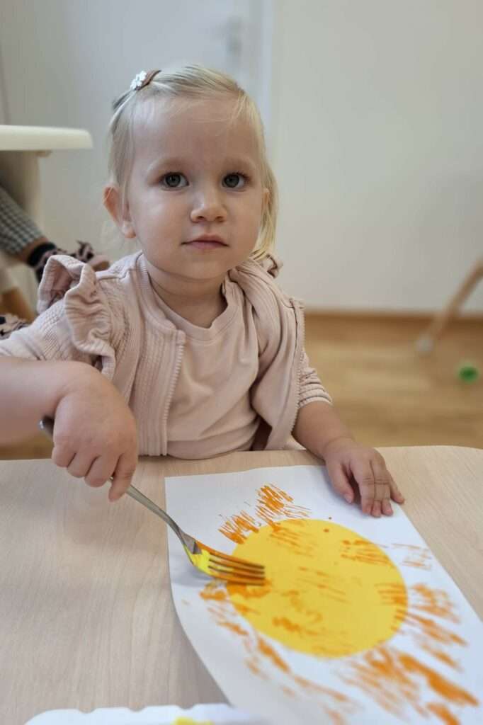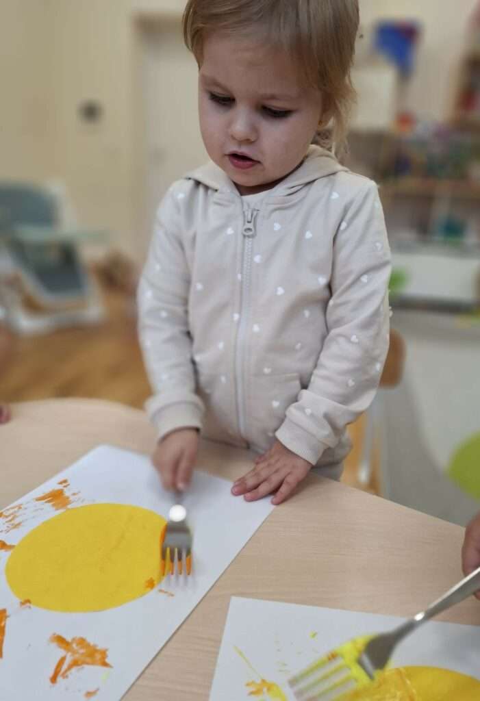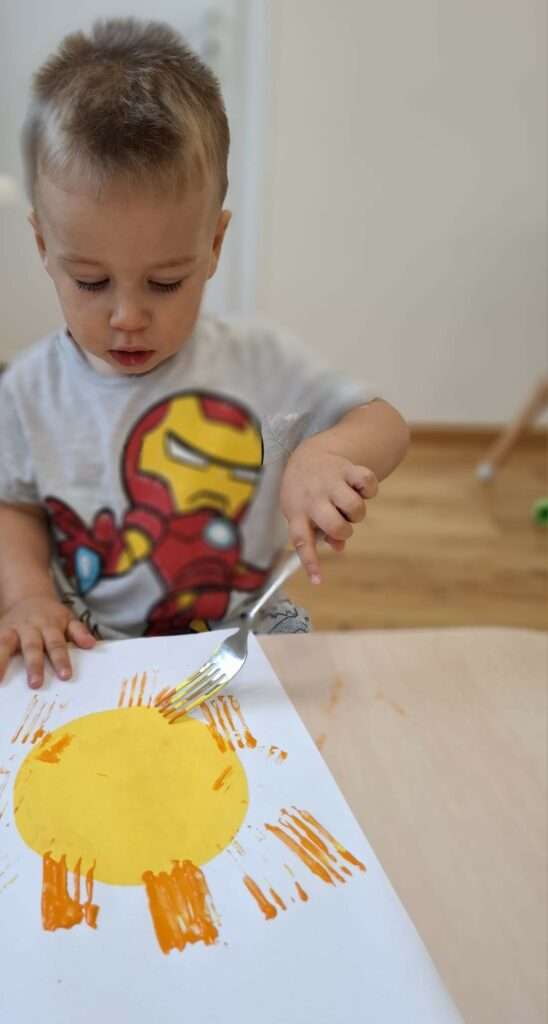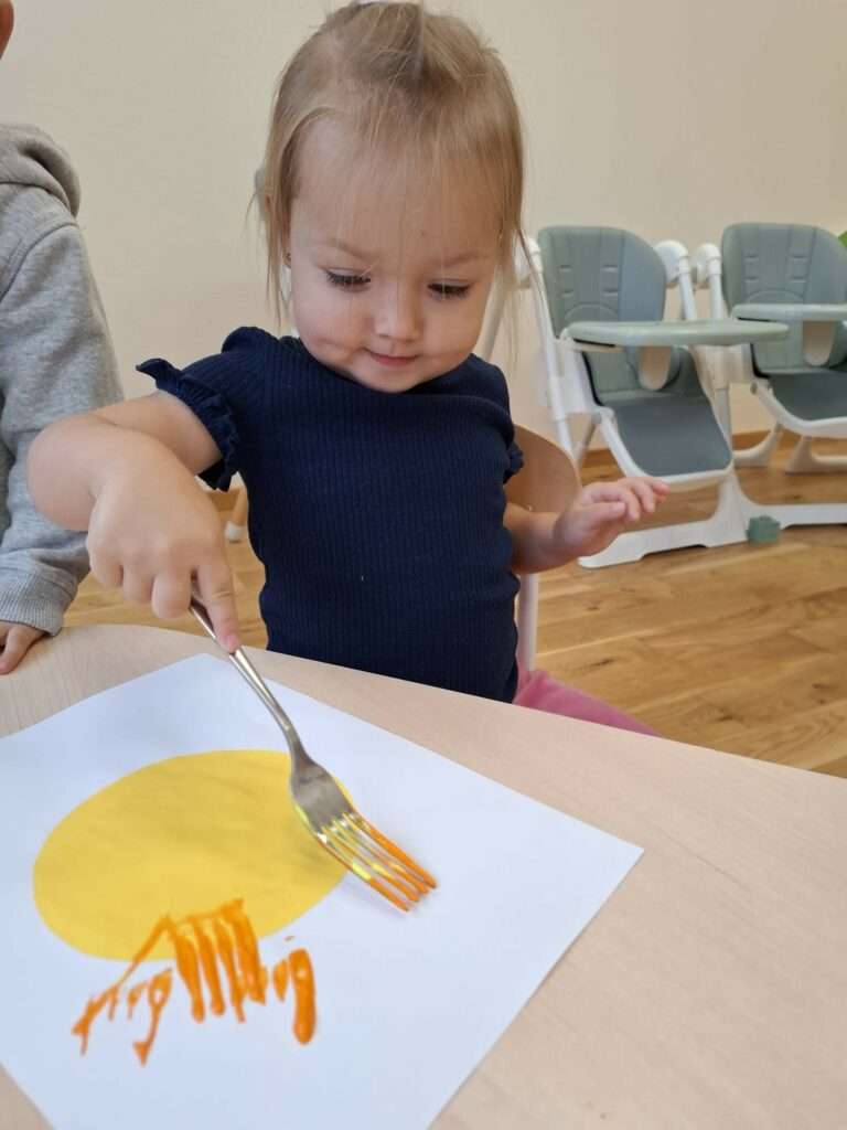 Maluchy stworzyły je w niezwykły sposób przy użyciu widelców oraz złocistej i pomarańczowej farby .![]()