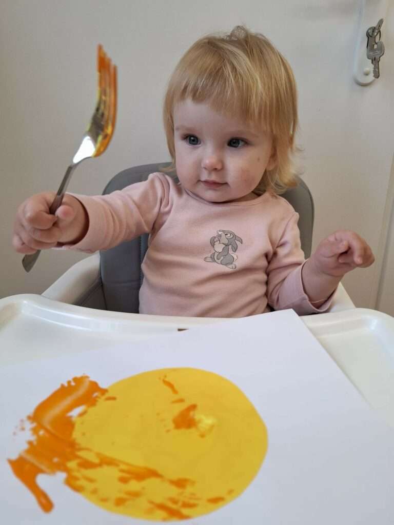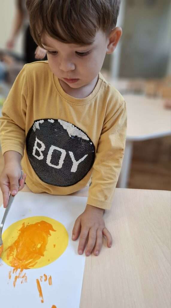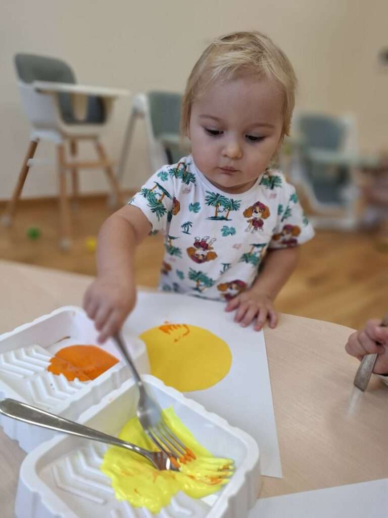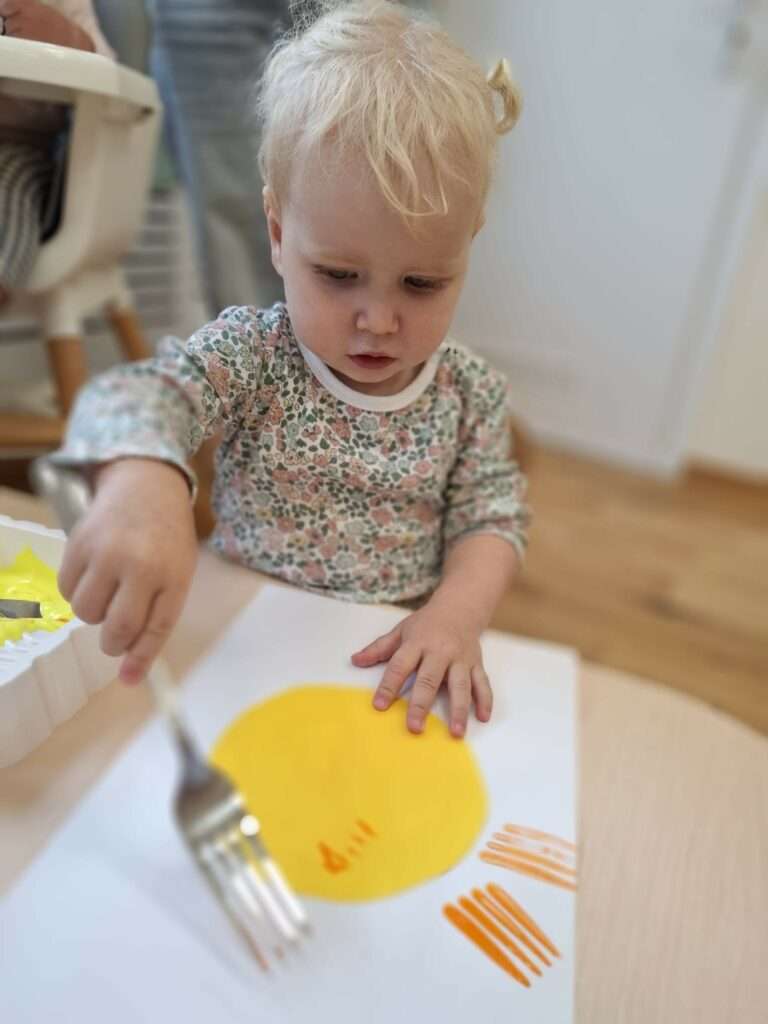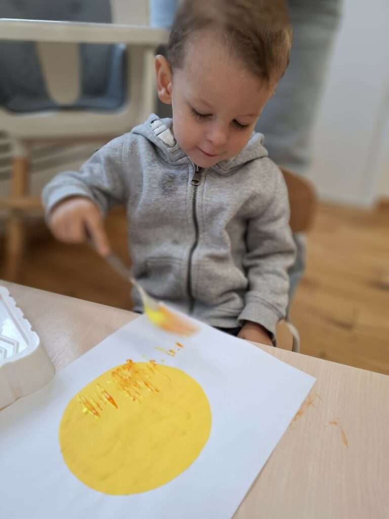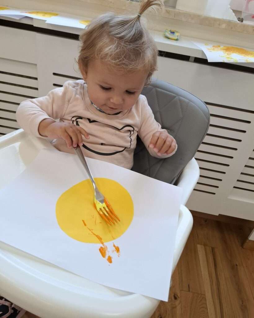 Maluchy stworzyły je w niezwykły sposób przy użyciu widelców oraz złocistej i pomarańczowej farby .![]()