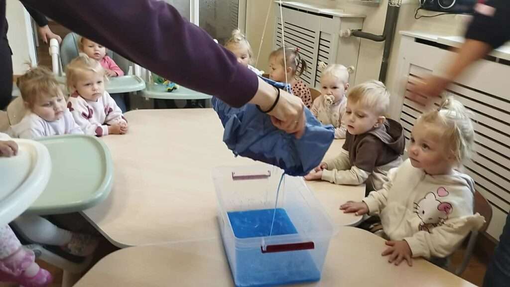 Przy stolikach powstały piękne, kolorowe mini parasolki, a dodatkową atrakcją był eksperyment pokazujący, jak kropelki deszczu spadają z chmur. ![]()