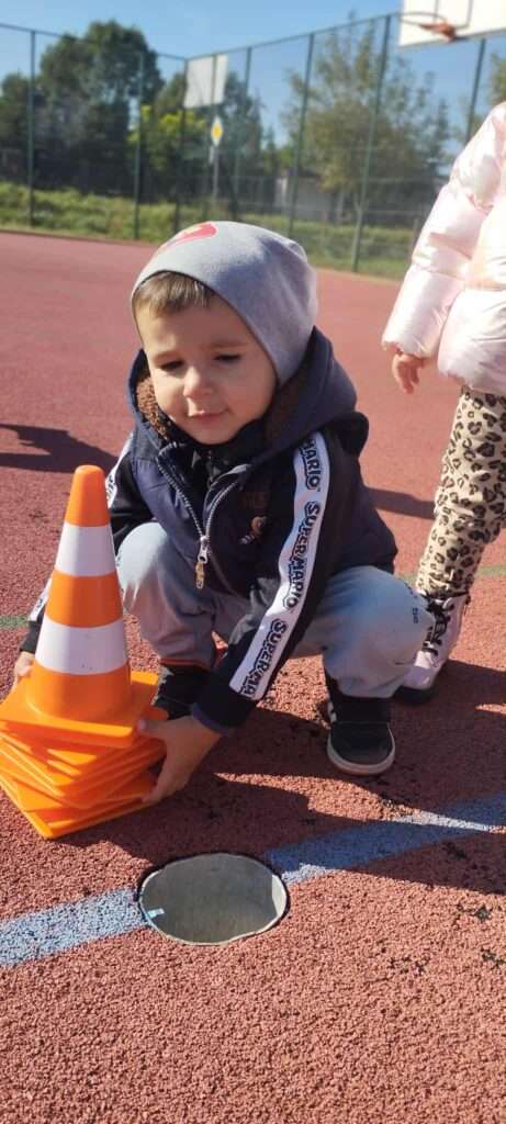 Dzień pełen uśmiechów i ruchu na świeżym powietrzu! Maluchy cieszyły się wspólną zabawą i aktywnościami na boisku sportowym.