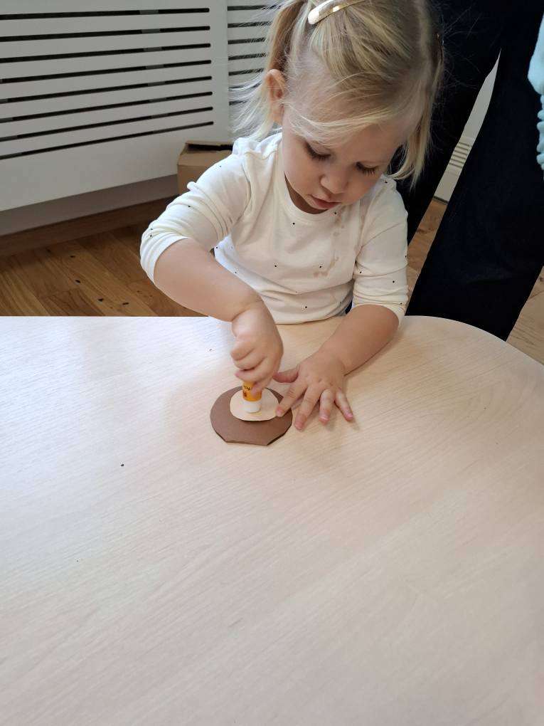 Podczas pracy przy stolikach nasze maluchy tworzyły swoje własne, wyjątkowe dzieła – kasztanki. To była świetna okazja do rozwijania wyobraźni i sprawności małych rączek. Dzień Kasztana przyniósł nam mnóstwo pozytywnej energii i jesiennego ciepła.
