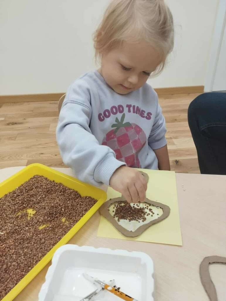 Zabawa była pełna wrażeń dotykowych, zapachowych i kolorystycznych — a przy okazji ćwiczyliśmy małą motorykę, koncentrację i cierpliwość. ![]()
