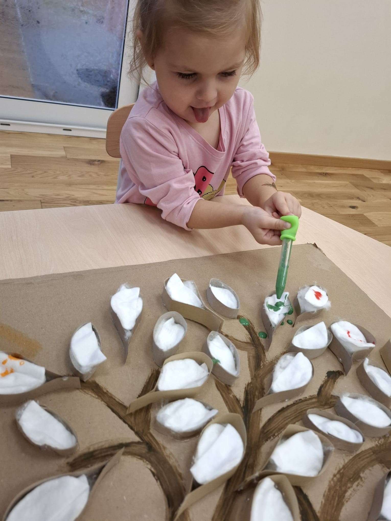 Praca z pipetą wymagała od naszych maluchów dużej cierpliwości, skupienia i precyzji ruchów, a jednocześnie była dla nich wspaniałą zabawą i okazją do rozwijania małej motoryki.![]()