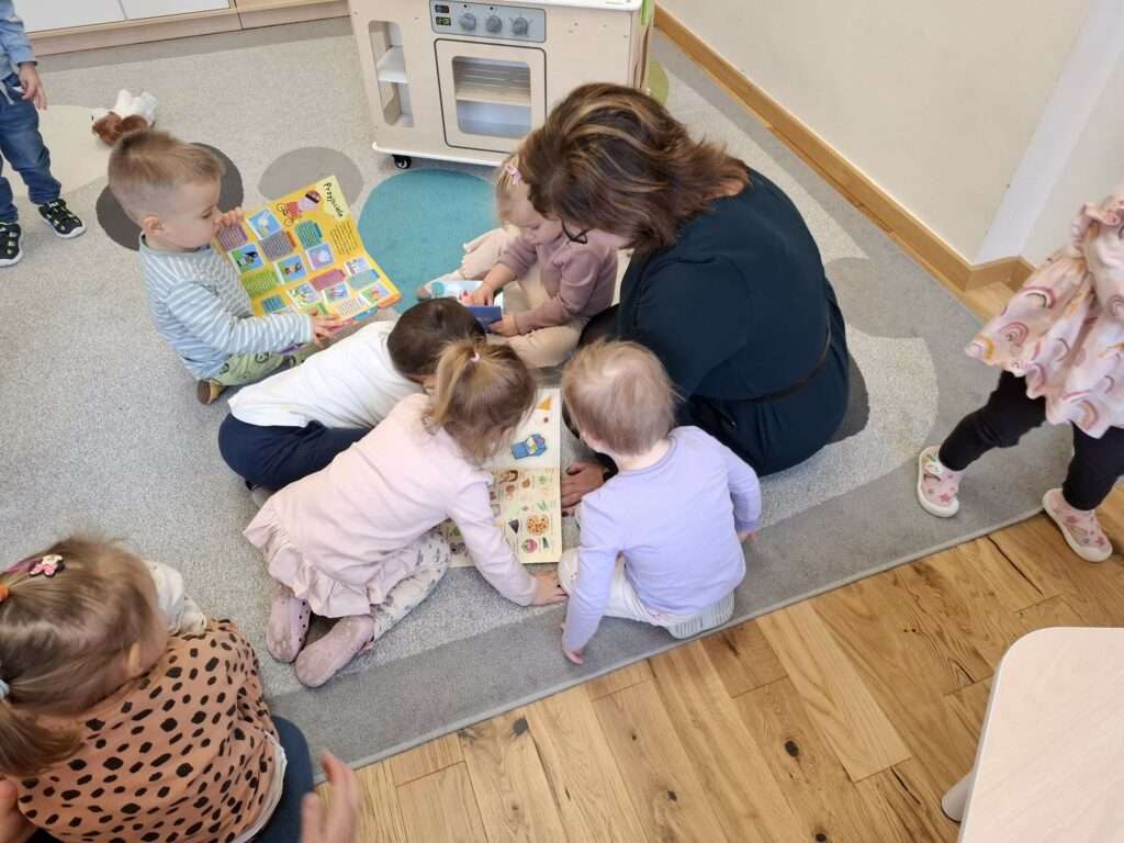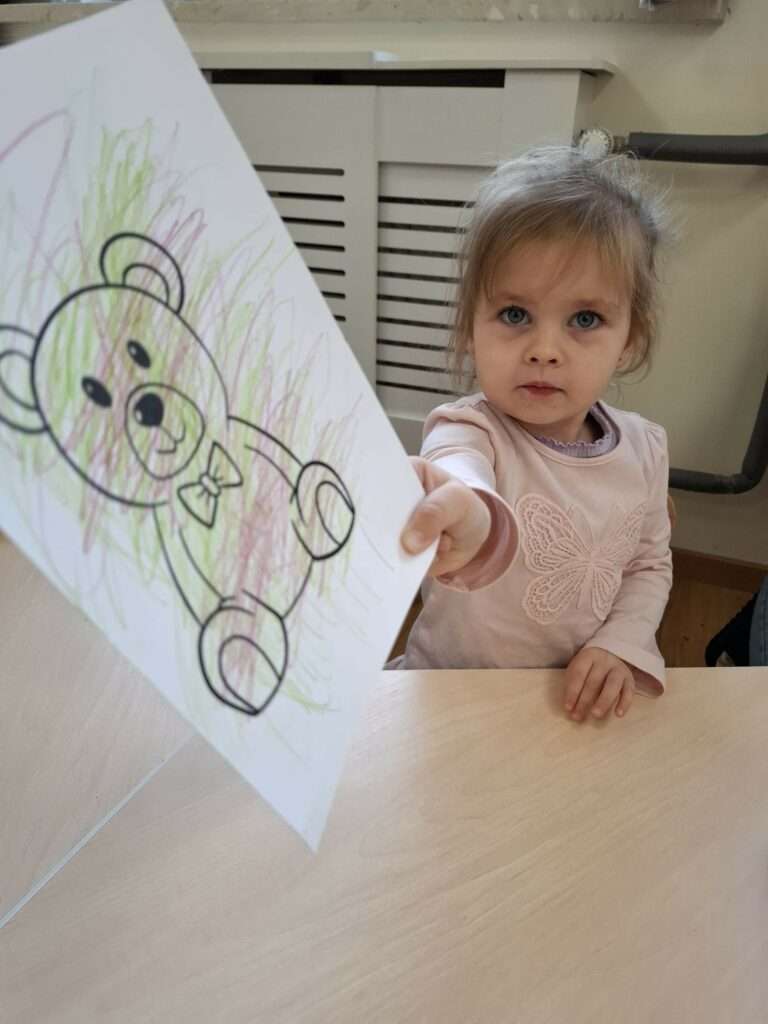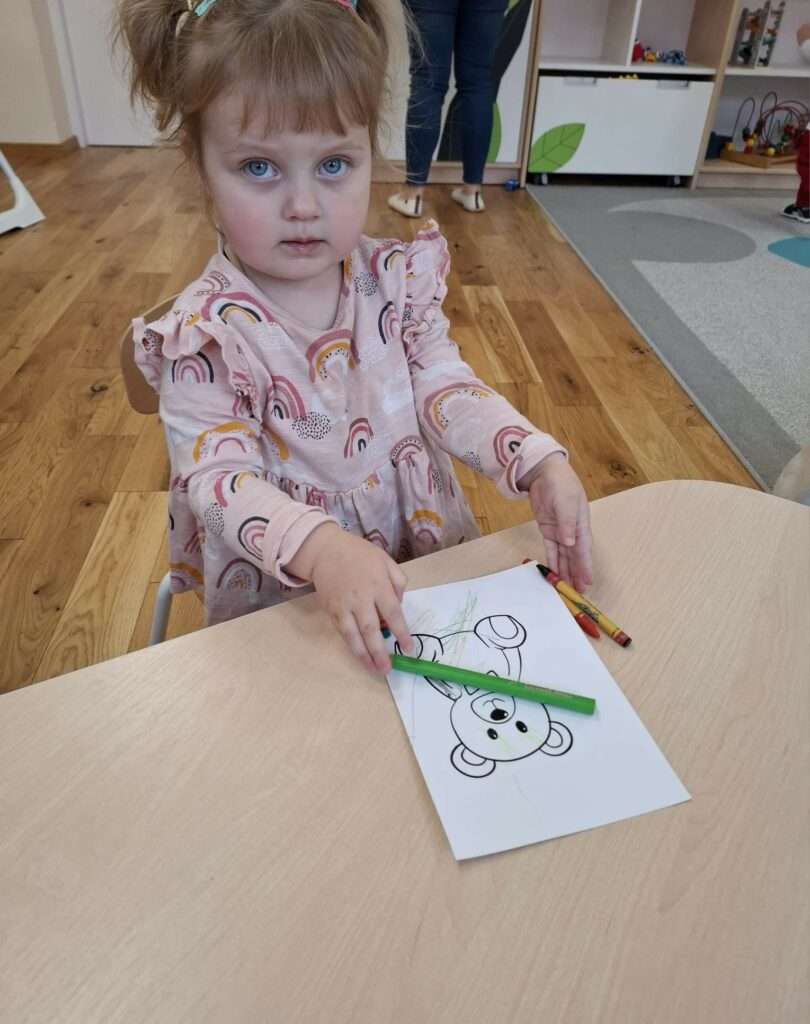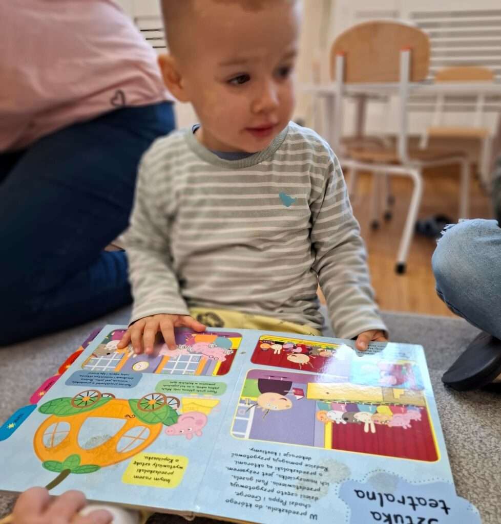 Dzięki Pani Halince nasze maluchy również poznały tajemniczą historię z bajeczki „Jest tam kto?” autorstwa Anny-Clary Tidholm – wspólnie odkrywaliśmy, co kryje się za kolorowymi drzwiami i kto może się tam znajdować.![]()