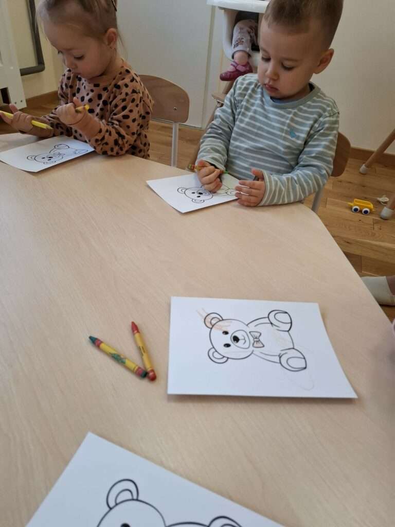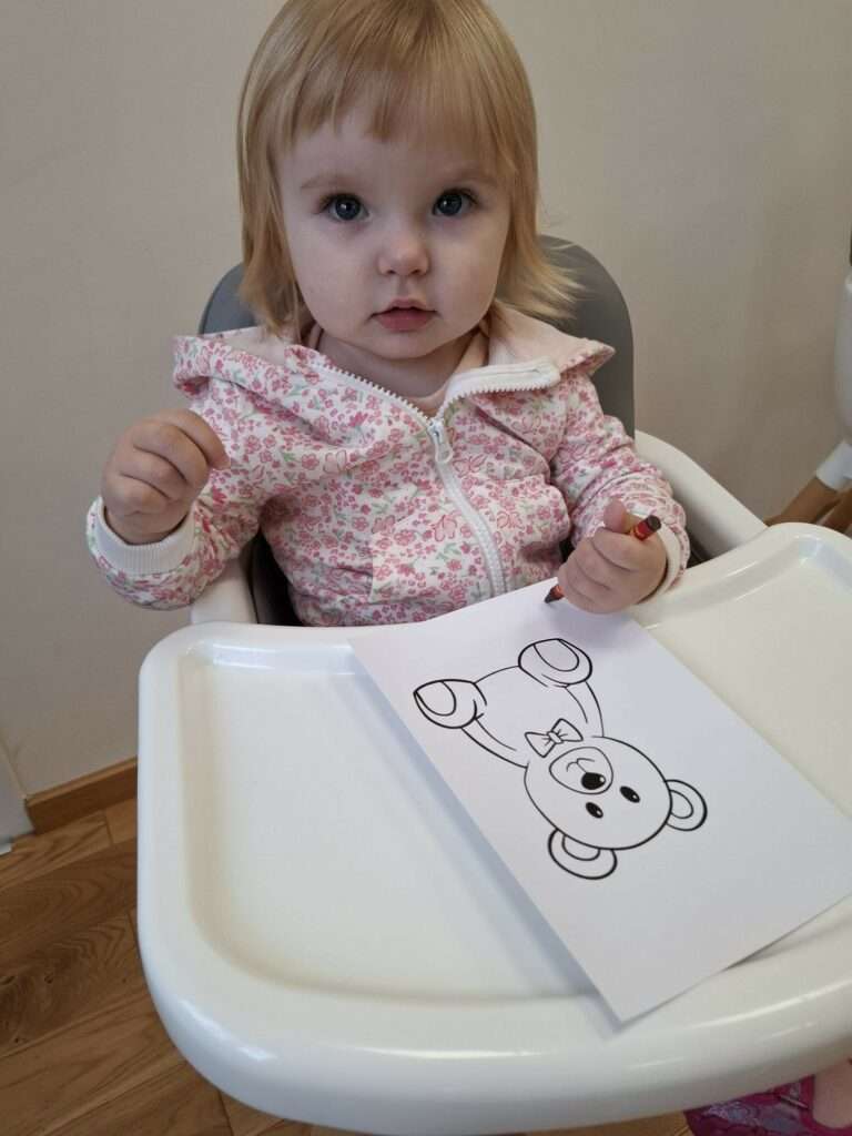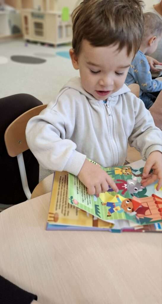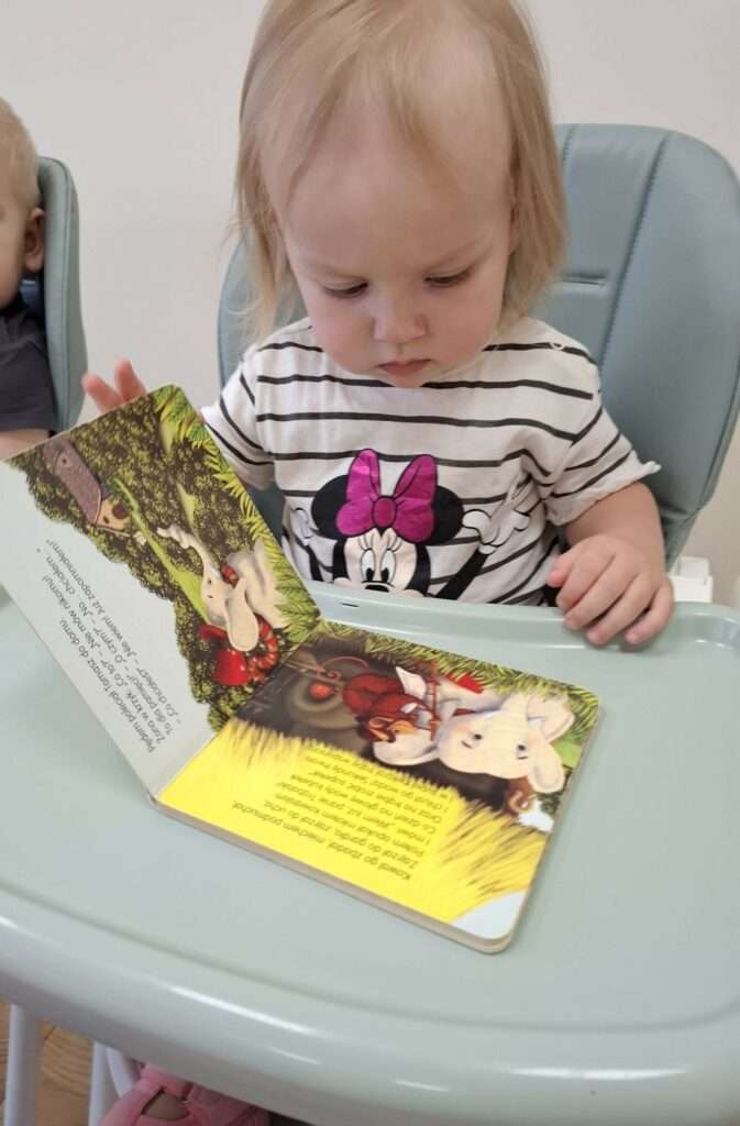 Dzięki Pani Halince nasze maluchy również poznały tajemniczą historię z bajeczki „Jest tam kto?” autorstwa Anny-Clary Tidholm – wspólnie odkrywaliśmy, co kryje się za kolorowymi drzwiami i kto może się tam znajdować.![]()