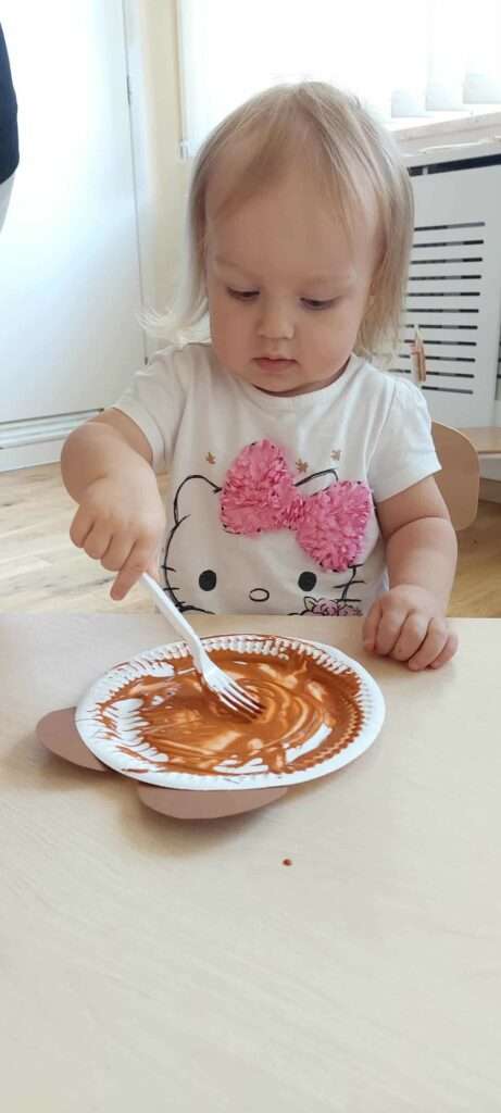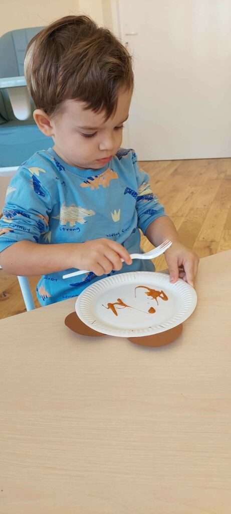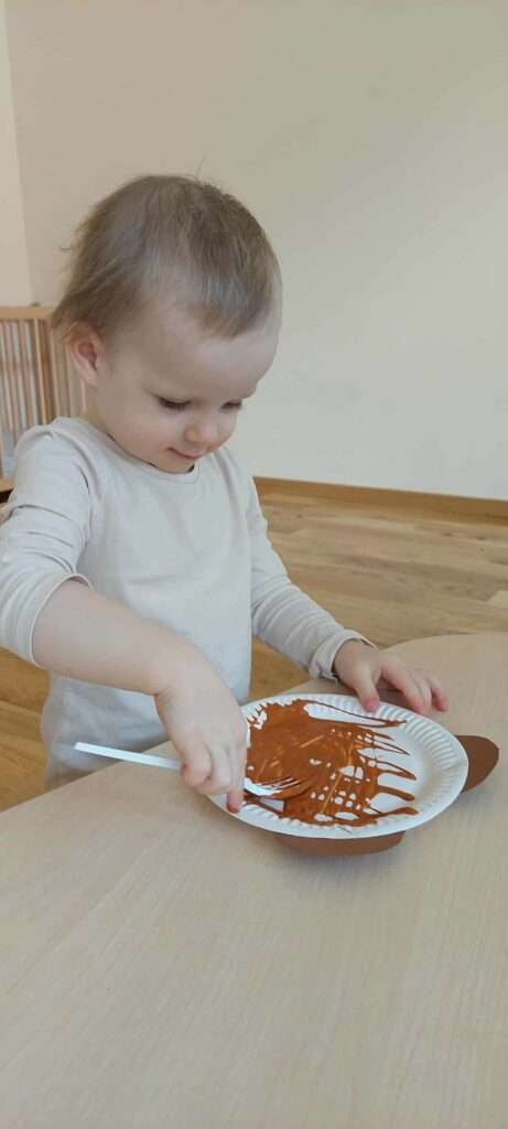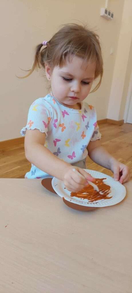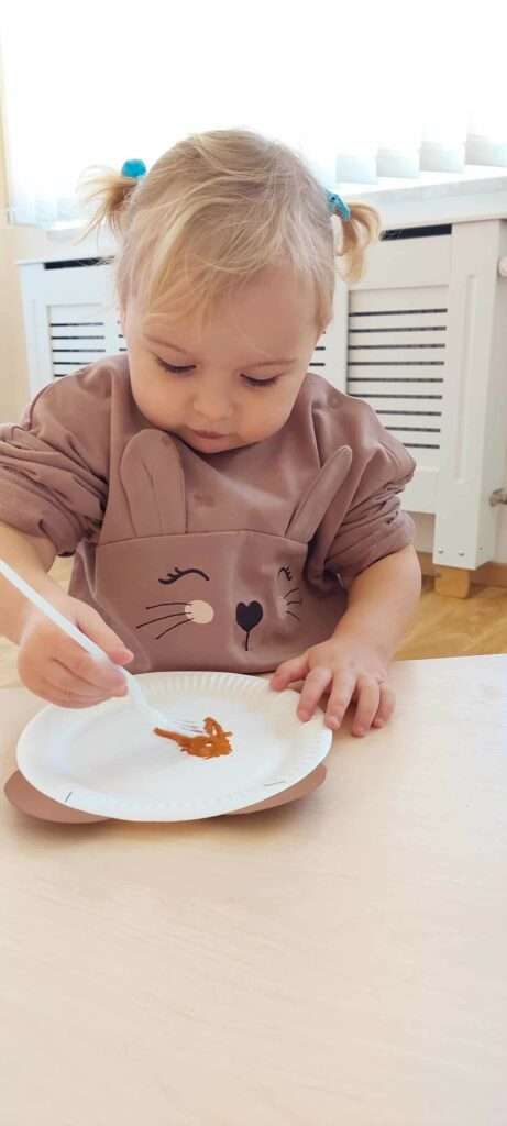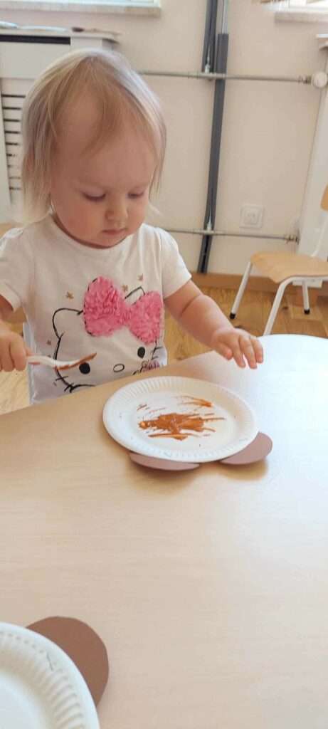 Dzieci stworzyły swoje własne misie – używając widelców i brązowej farby pomalowały papierowe talerzyki, z których powstały urocze misiowe główki.