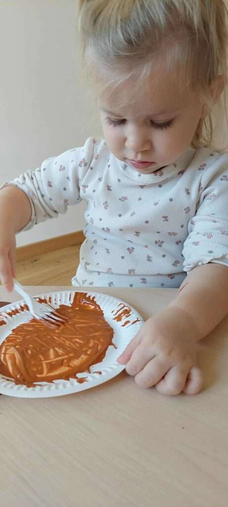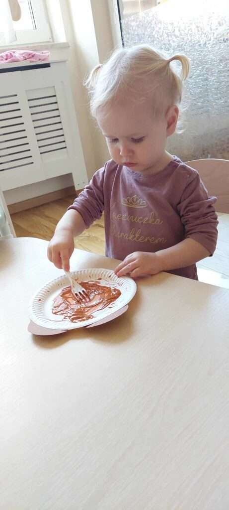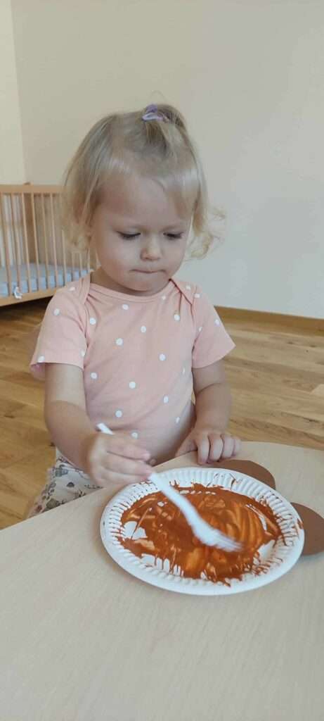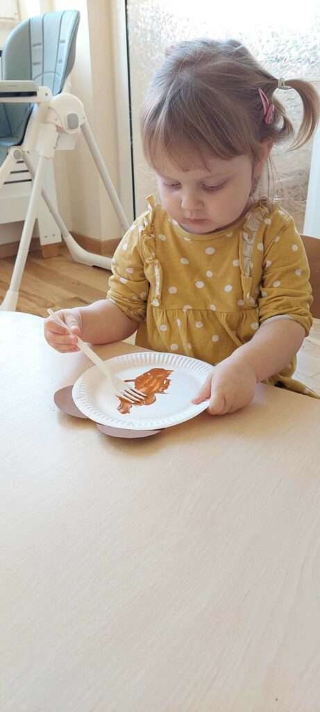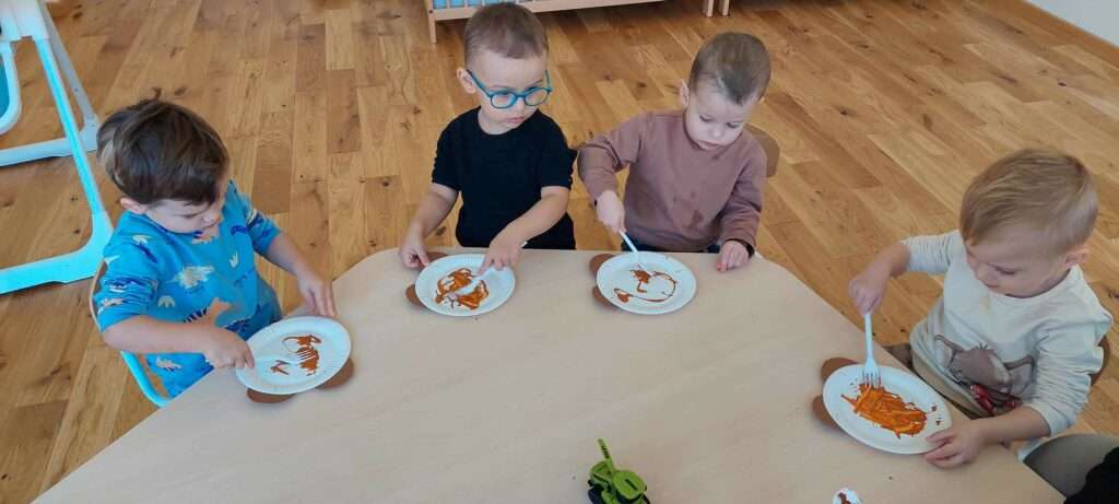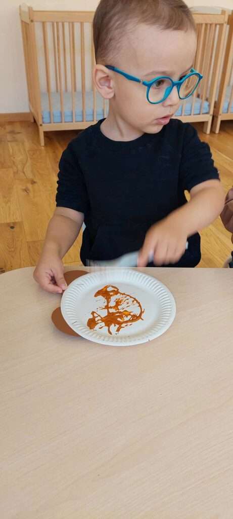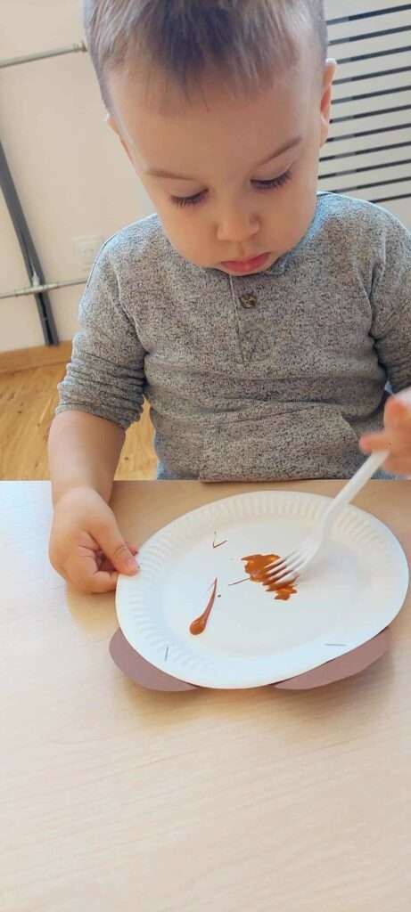 Dzieci stworzyły swoje własne misie – używając widelców i brązowej farby pomalowały papierowe talerzyki, z których powstały urocze misiowe główki.