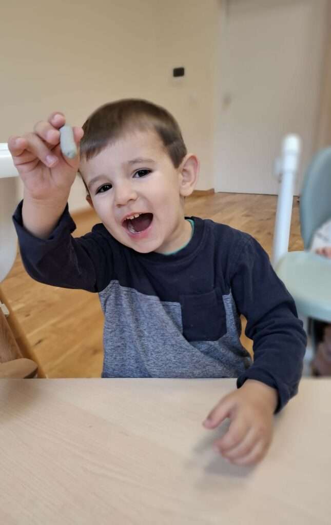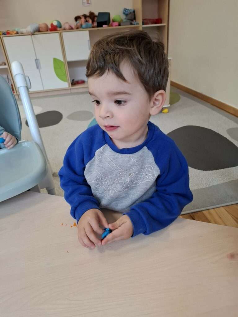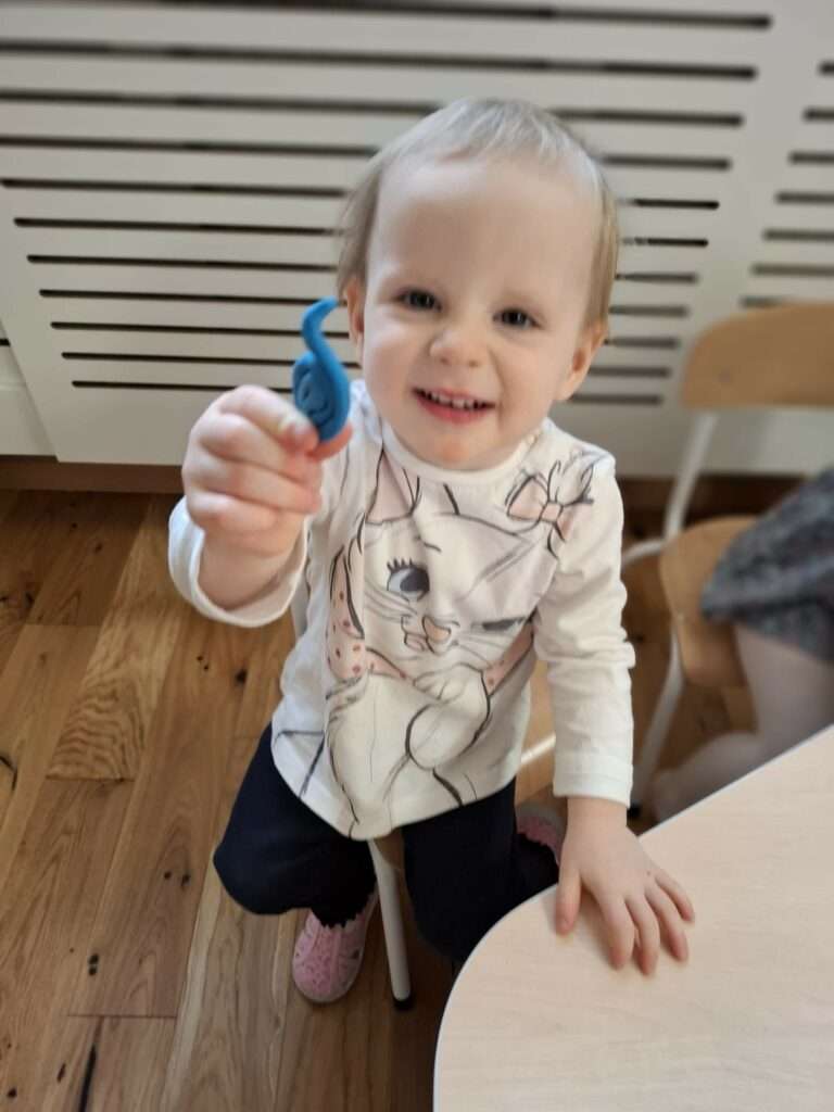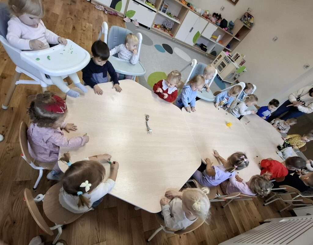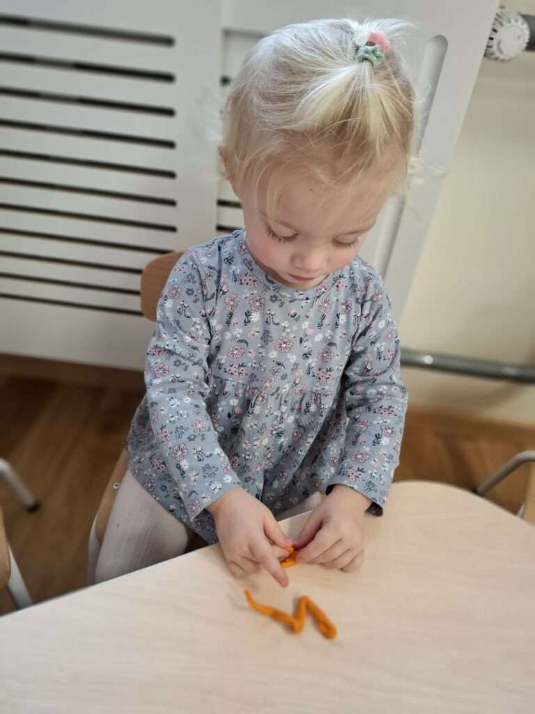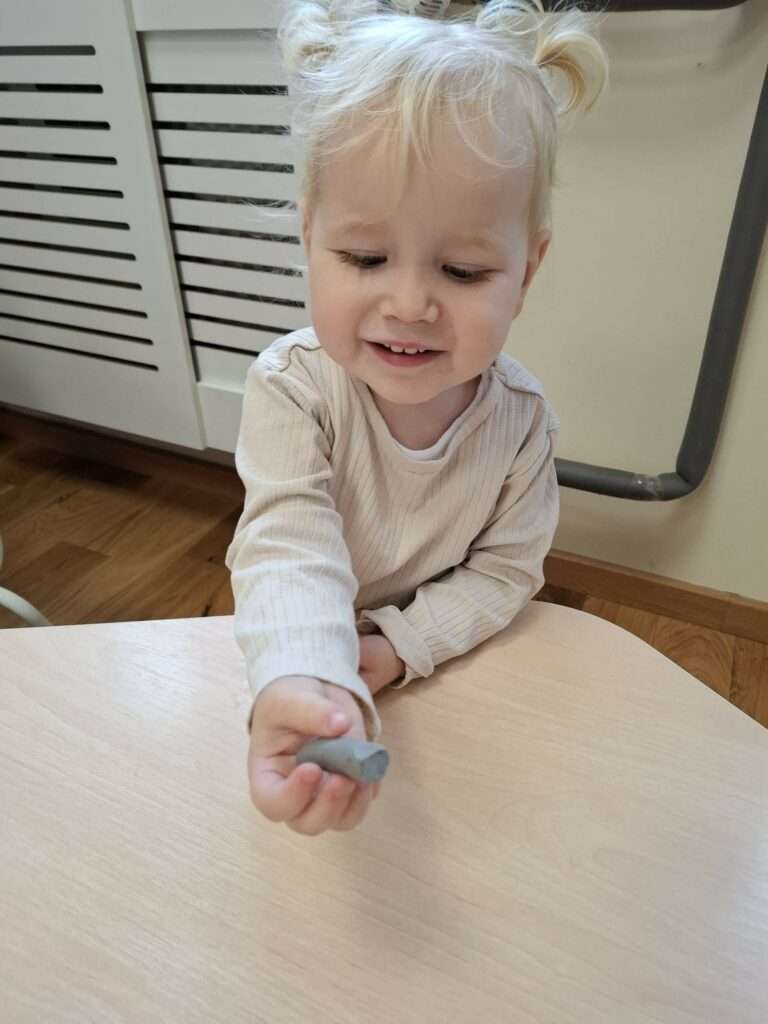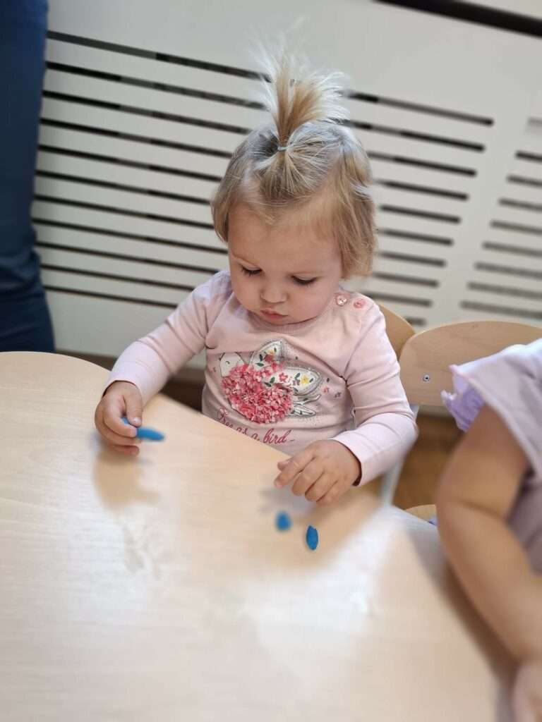 Dzieci z zaangażowaniem ugniatały, lepiły i łączyły elementy, ćwicząc przy tym sprawność rączek i wyobraźnię.![]()