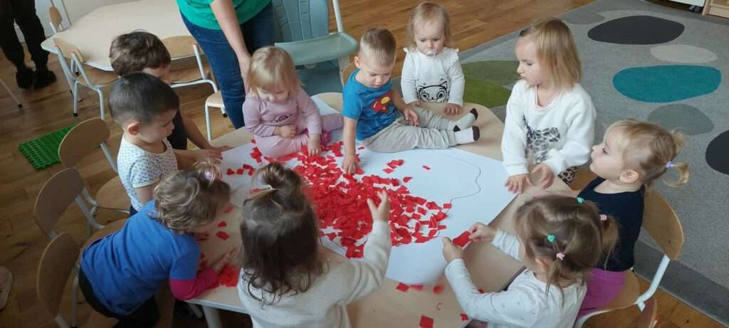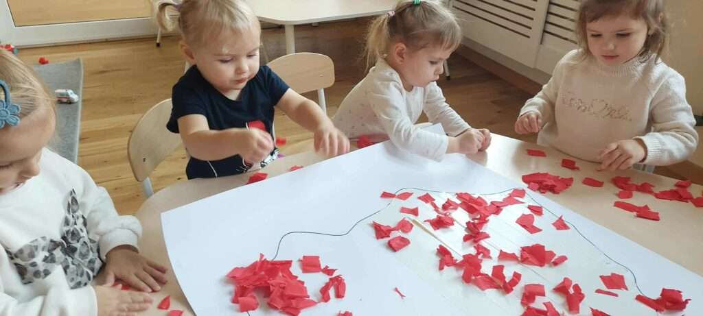 Na zakończenie dzieci wykonały prace plastyczne – kontur Polski w barwach flagi.
