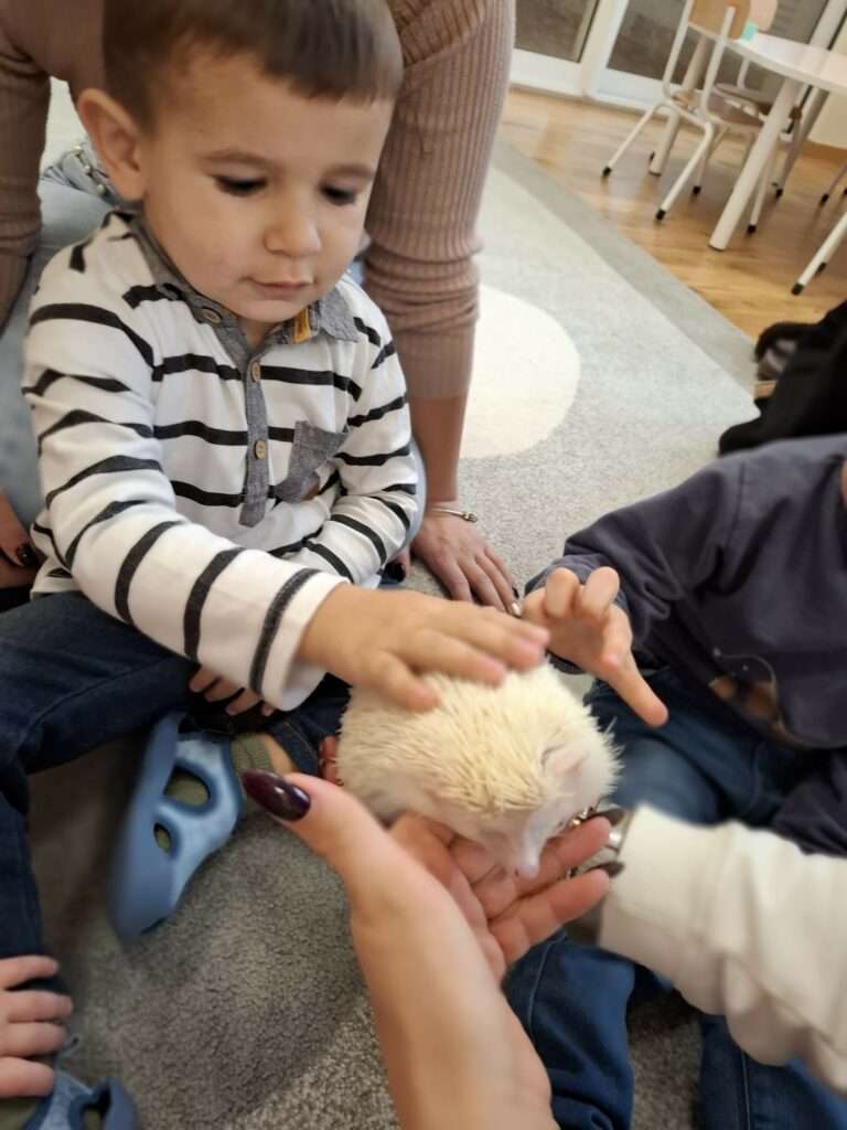 Opiekunka Jeżynki opowiedziała dzieciom o tym, co jeż lubi robić, co jeść i jak należy się z nim obchodzić, aby czuł się bezpiecznie i komfortowo. Maluchy mogły także obserwować, jak Jeżynka zajada swoje ulubione przekąski – to był prawdziwy hit dnia.