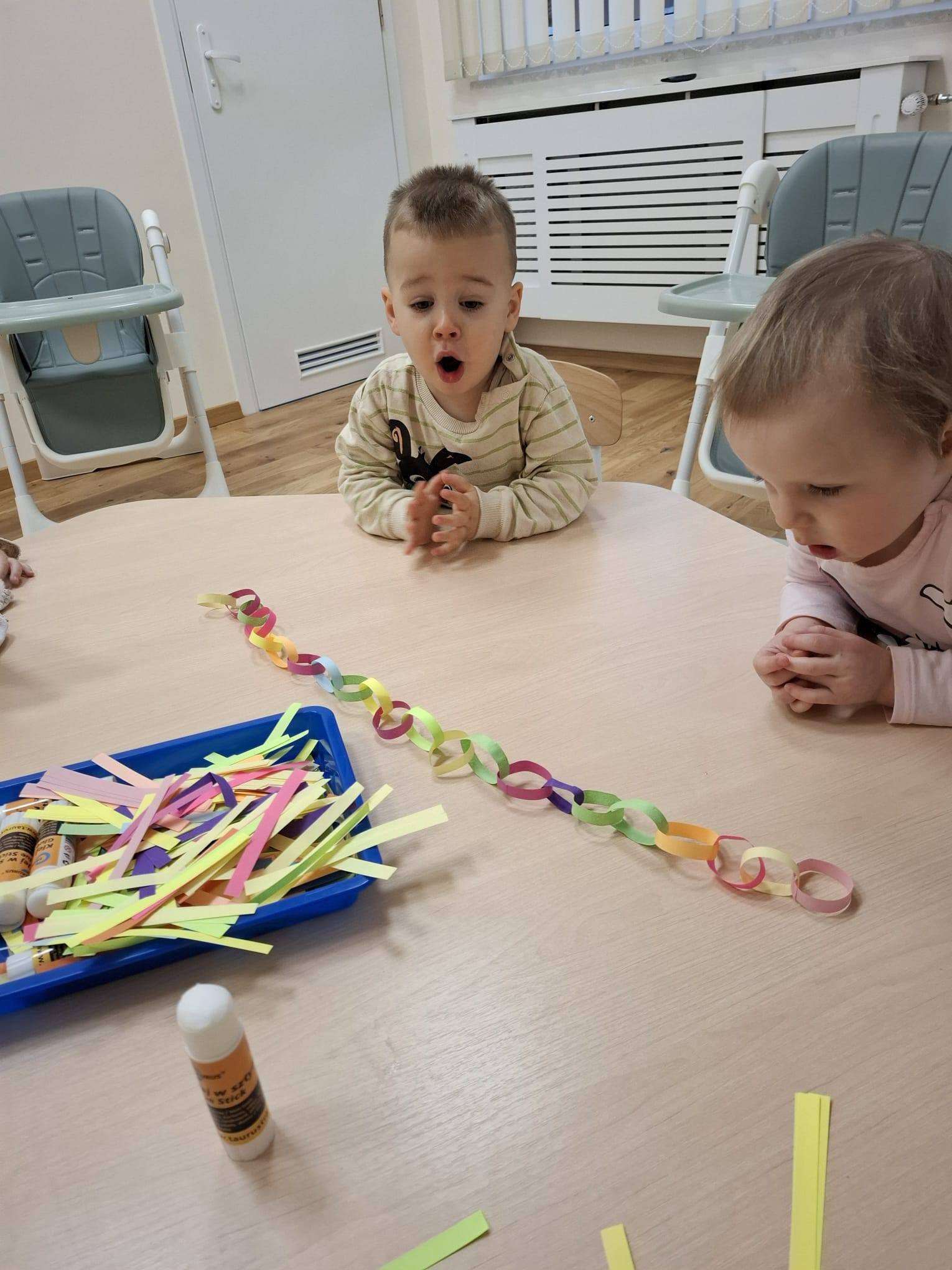 czytaj więcejDziś w naszej grupie panował prawdziwie magiczny, przedświąteczny nastrój. Dzieci tworzyły kolorowy łańcuch na choinkę z papierowych pasków. Maluchy z zaangażowaniem łączyły elementy, ćwicząc przy tym małą motorykę,