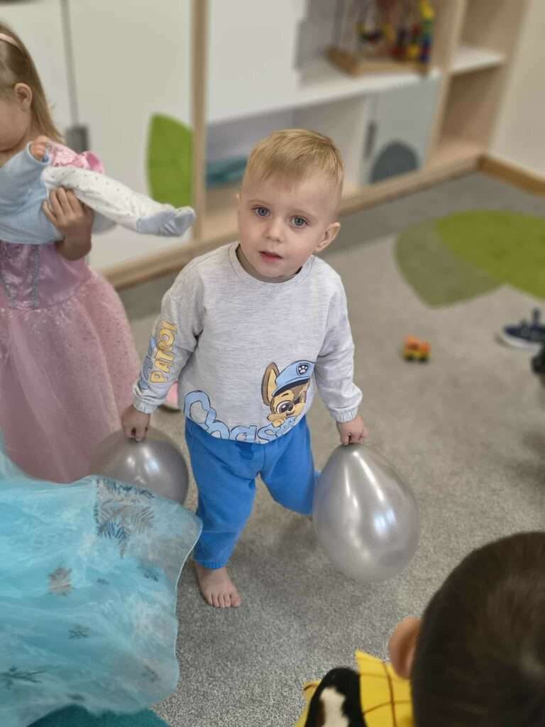 Zanim jednak rozpoczęły się tańce i pląsy, wspólnie przygotowaliśmy wyjątkowy bąbelkowy eliksir. Kilka prostych składników wystarczyło, by wywołać zachwycające, kolorowe bąbelki – maluchy obserwowały to z szeroko otwartymi oczkami i wielkim uśmiechem. Nie zabrakło też tradycyjnych andrzejkowych zabaw.
