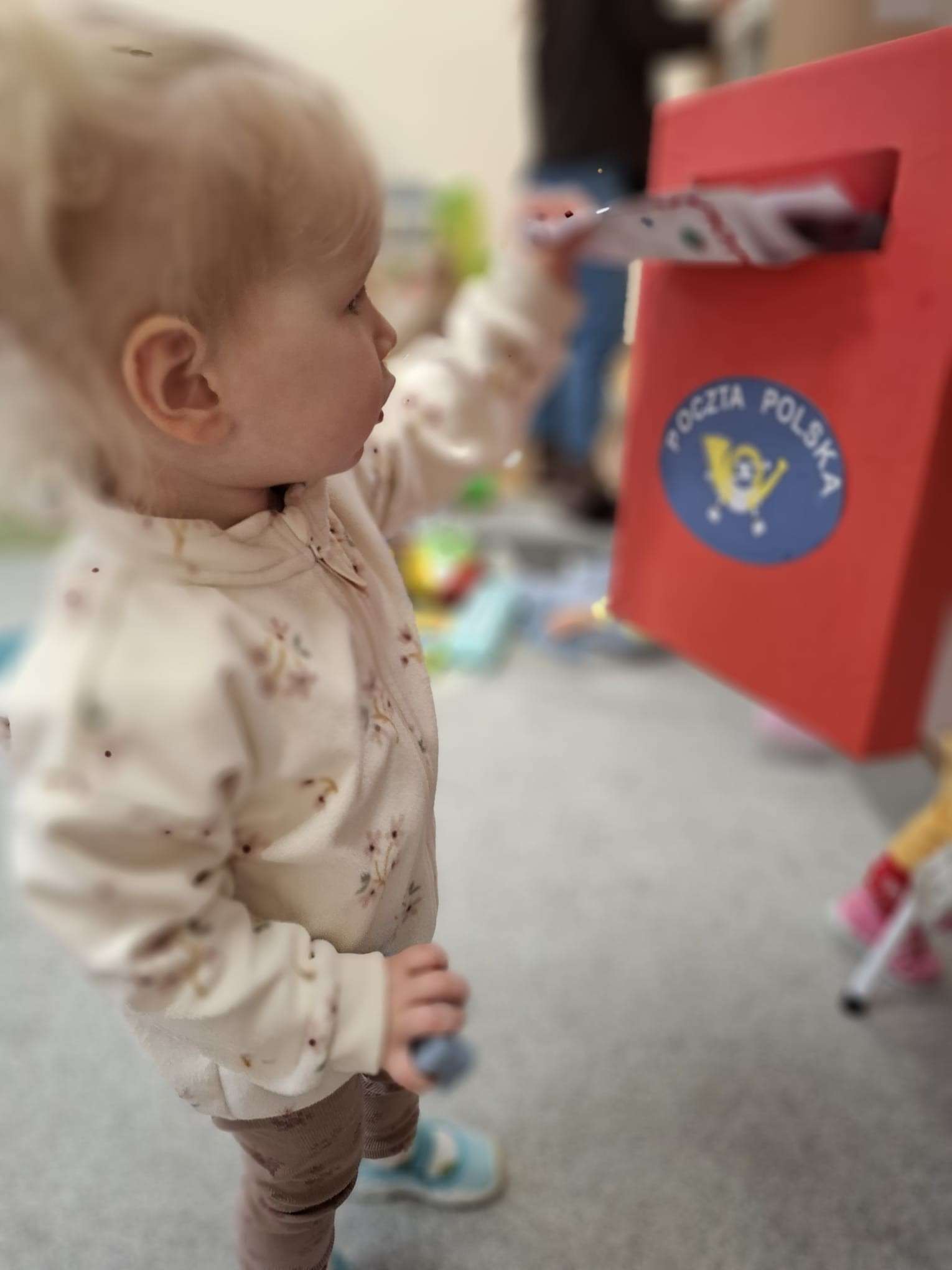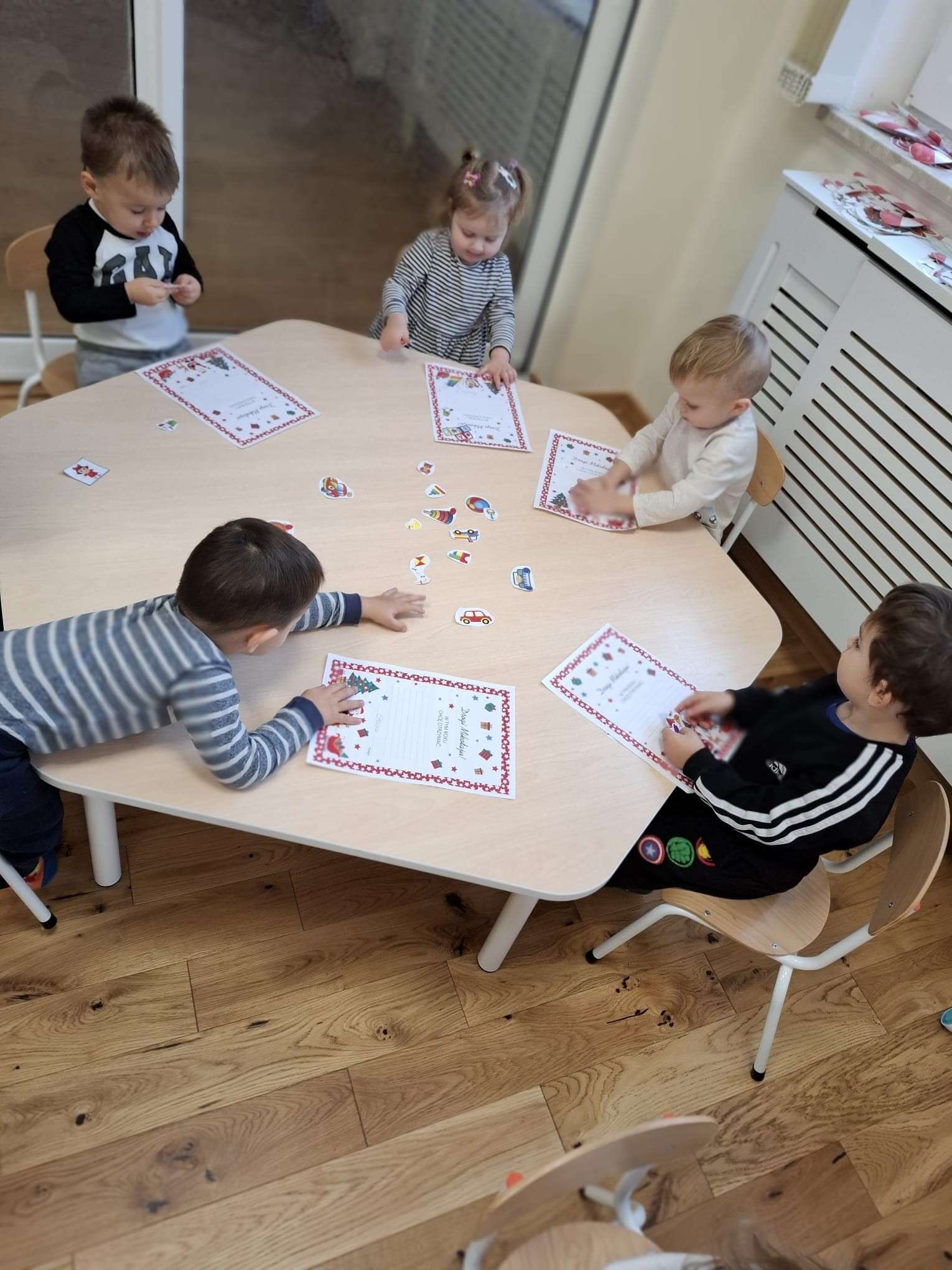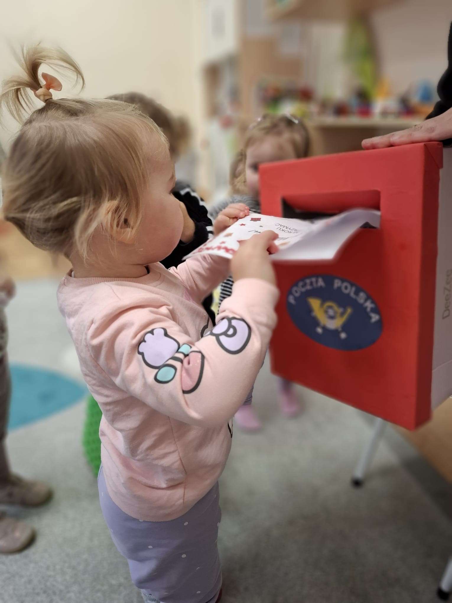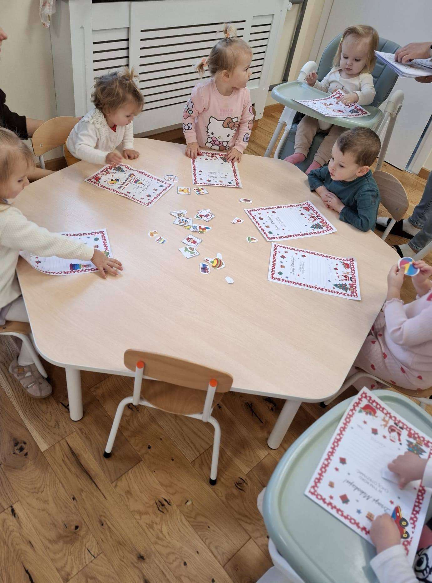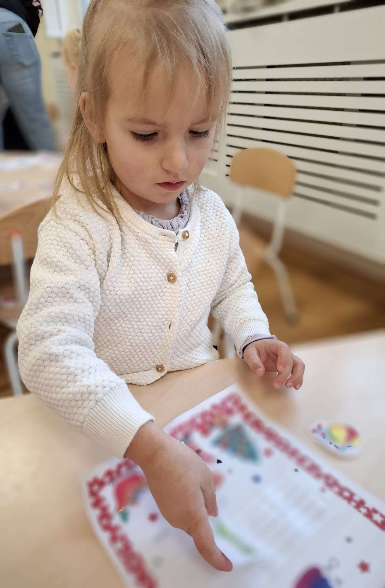 Każdy maluch z dumą naklejał wybrane obrazki na swój list, tworząc wyjątkową i jedyną w swoim rodzaju świąteczną prośbę. Gdy wszystkie listy były już gotowe, przyszedł czas na najważniejszy moment – wrzucenie ich do naszej mikołajowej skrzynki pocztowej.
