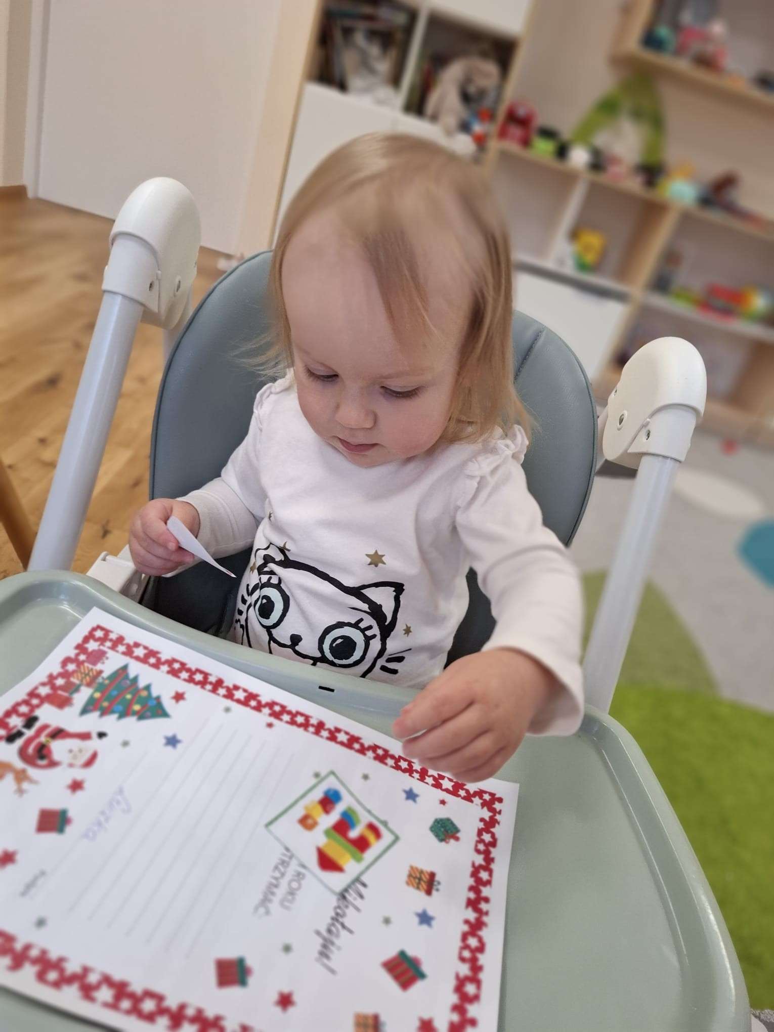 W naszym żłobku jest pełno radości, marzeń i świątecznej magii. Dzieci z ogromnym zaangażowaniem przygotowywały swoje listy do Świętego Mikołaja. Spośród wielu kolorowych obrazków wybierały te zabawki, które najbardziej im się marzą – klocki, misie, lale, instrumenty, hulajnogi, rowerki i wiele innych skarbów.