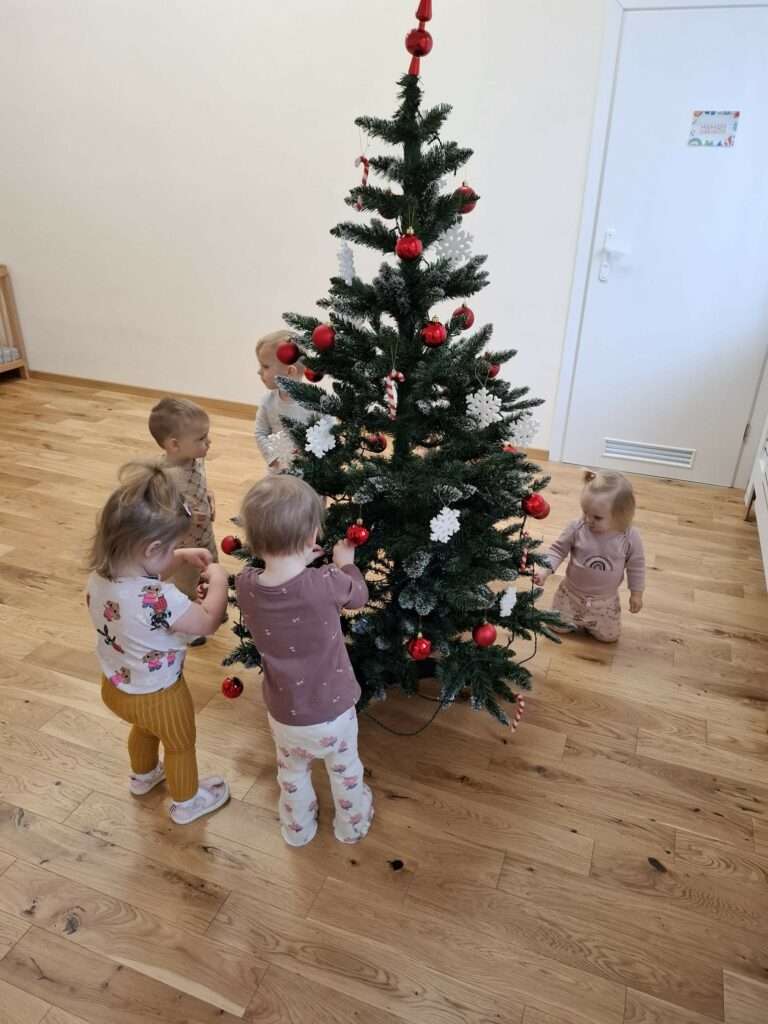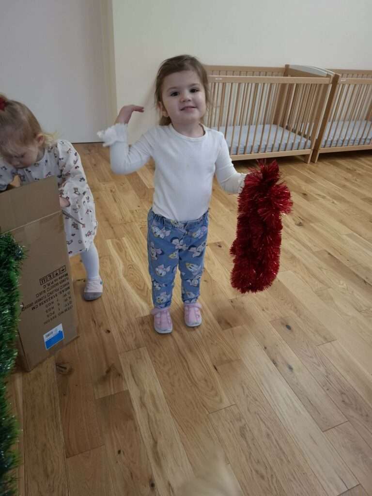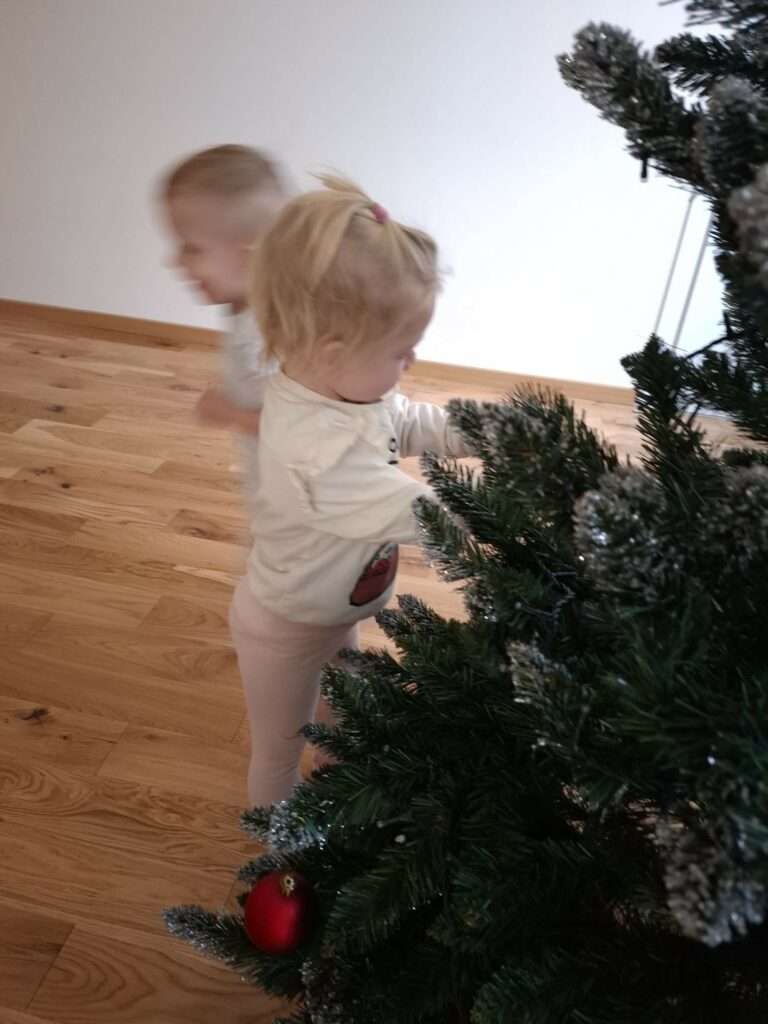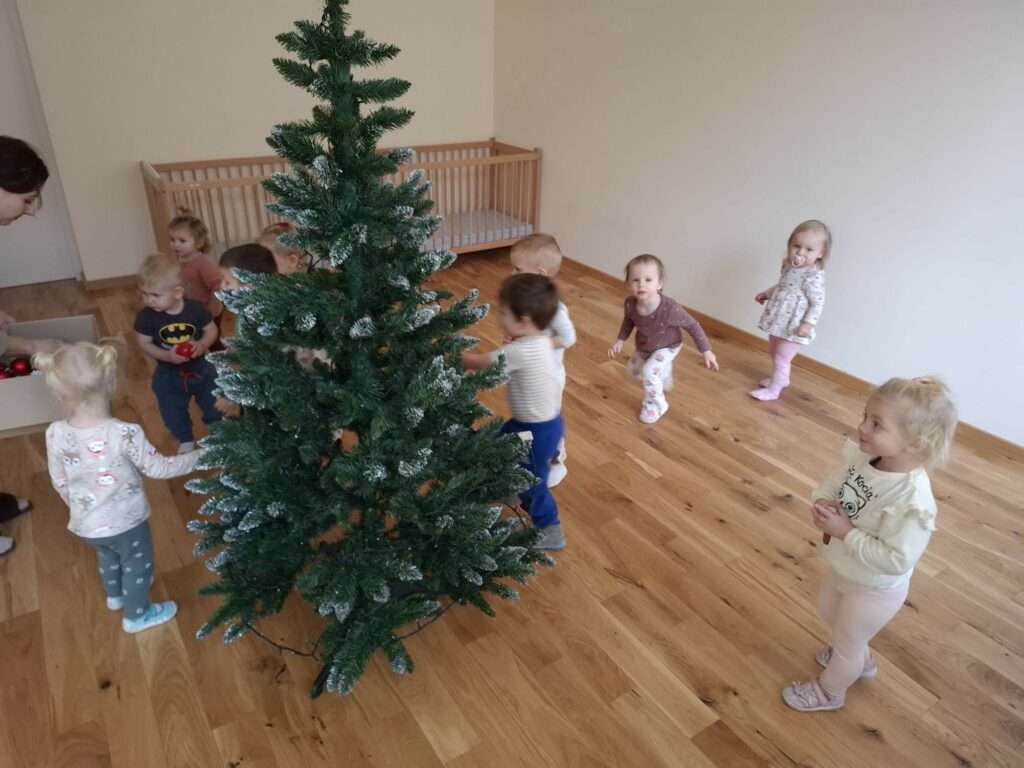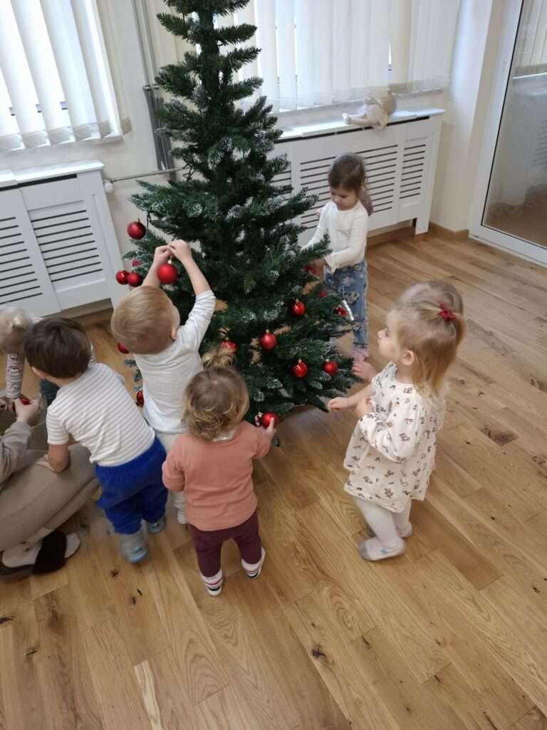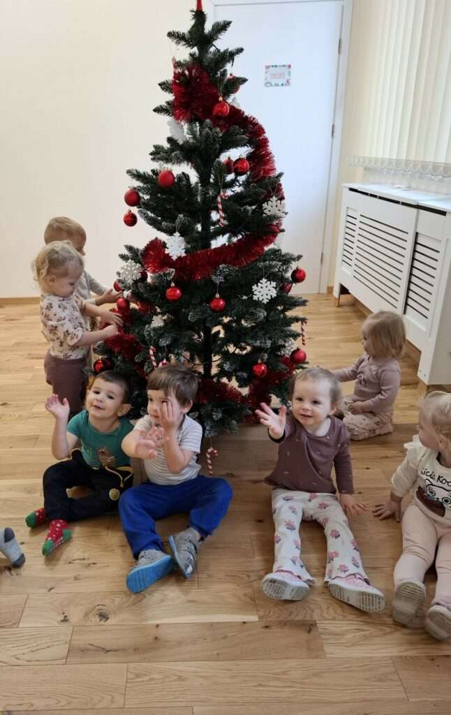 Maluszki zawieszały kolorowe bombki, miękkie łańcuchy i błyszczące lampki, a każda ozdoba trafiała na gałązkę z wielką starannością.