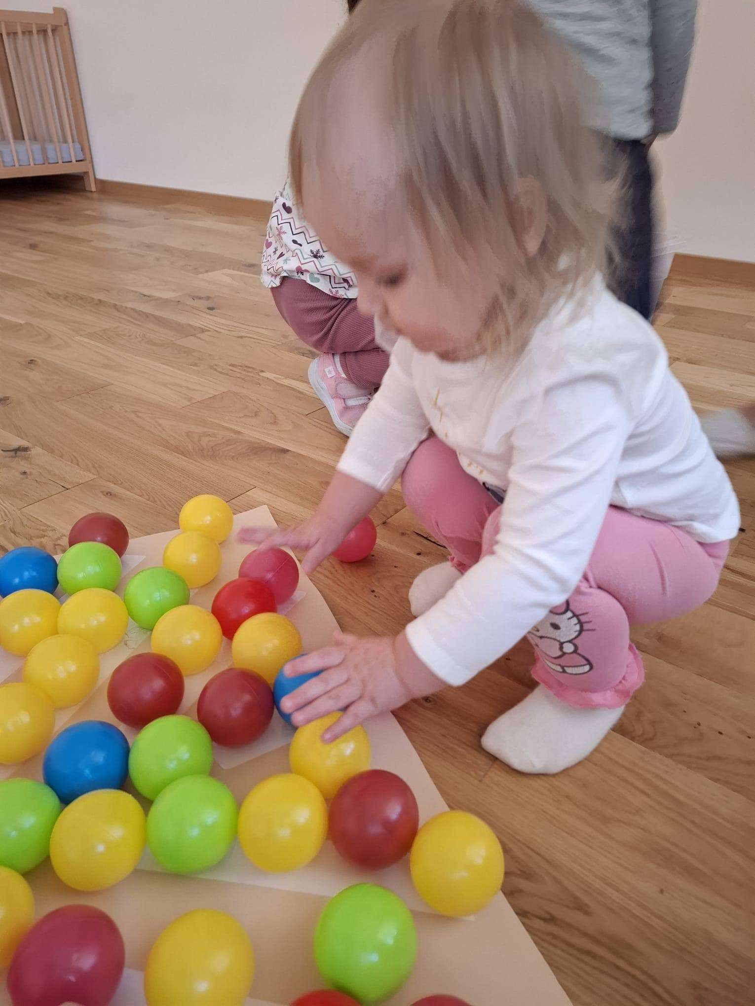 Maluchy brały udział w radosnej zabawie polegającej na tworzeniu choinki z kolorowych plastikowych piłeczek.![]()