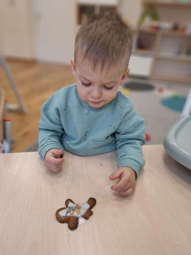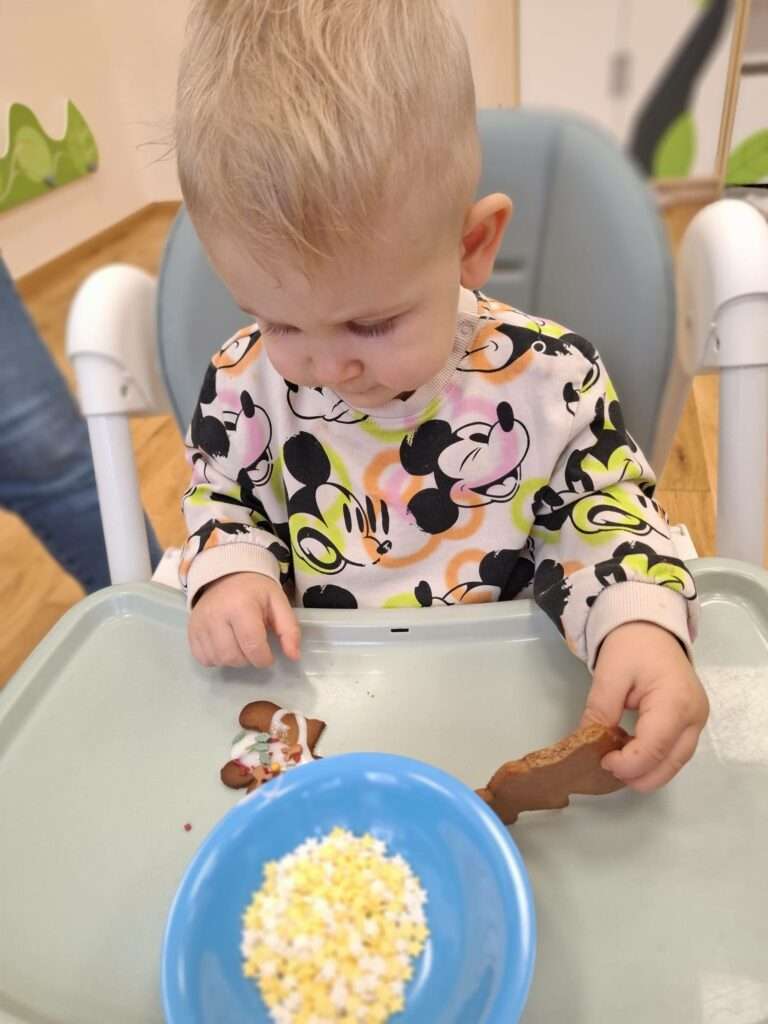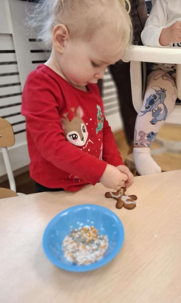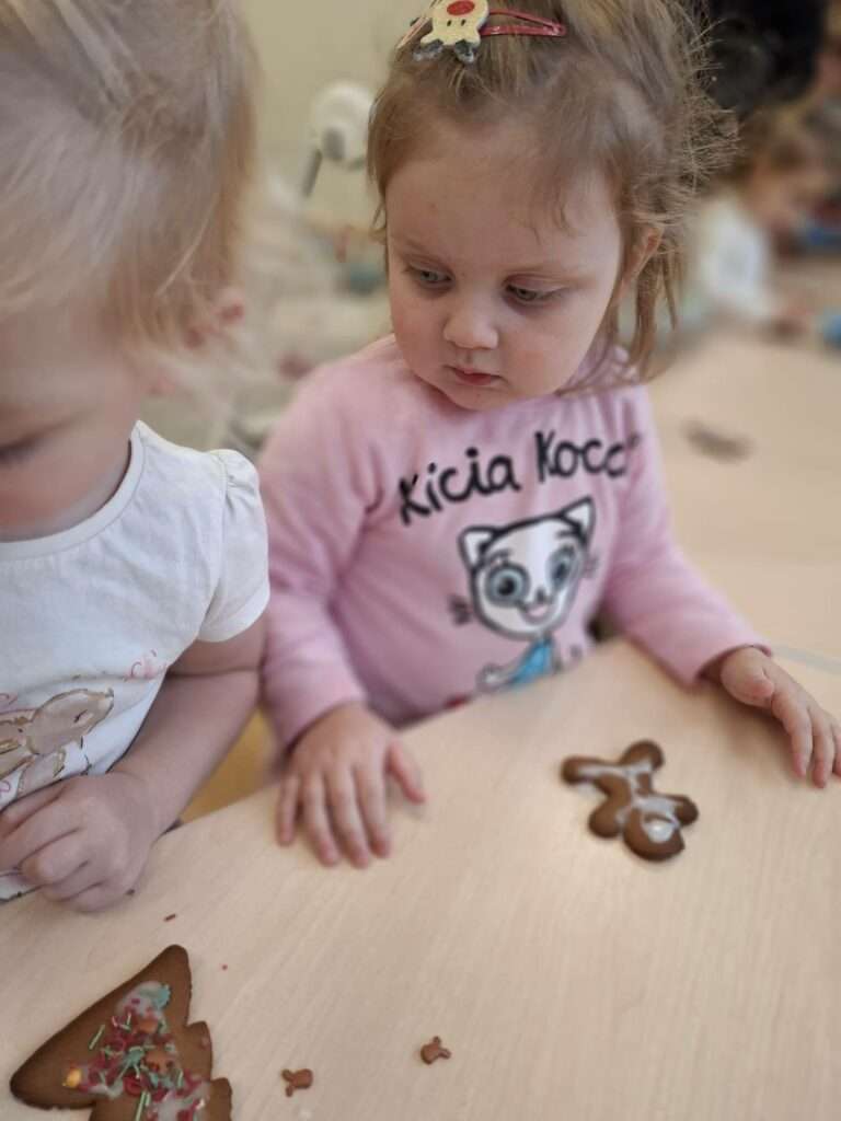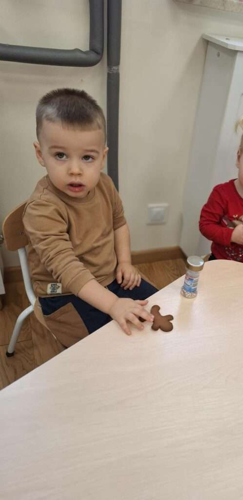 W ramach świątecznych przygotowań, nasze maluchy zamieniły się w małych cukierników. Z ogromnym zapałem zabrały się do dekorowania pierniczków – było polewanie lukrem, ozdabianie kolorowymi posypkami i tworzenie własnych słodkich dzieł sztuki.![]()