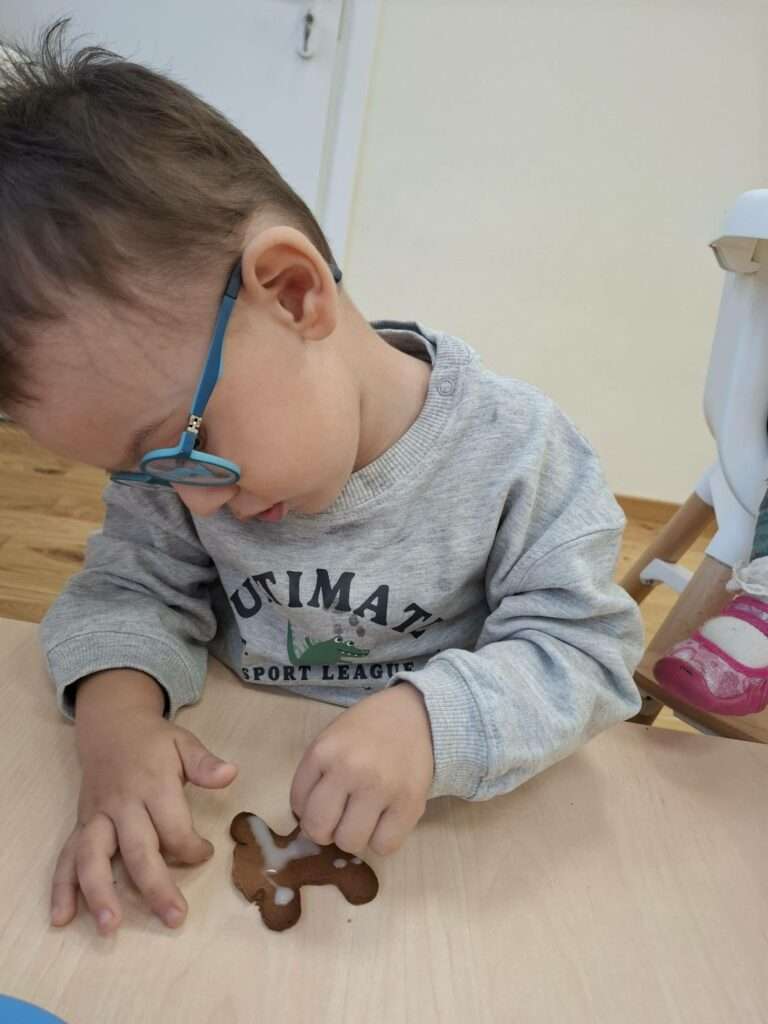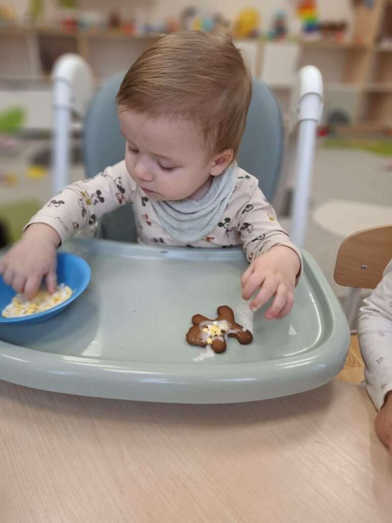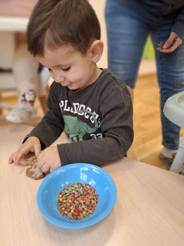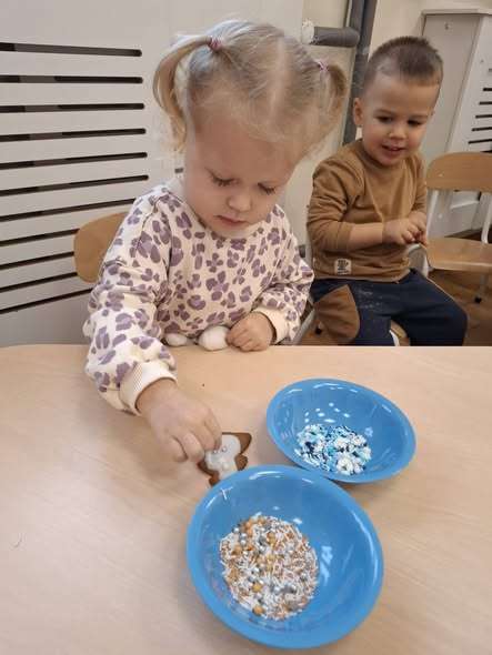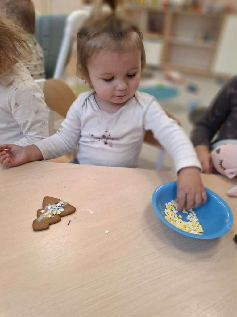 W ramach świątecznych przygotowań, nasze maluchy zamieniły się w małych cukierników. Z ogromnym zapałem zabrały się do dekorowania pierniczków – było polewanie lukrem, ozdabianie kolorowymi posypkami i tworzenie własnych słodkich dzieł sztuki.![]()