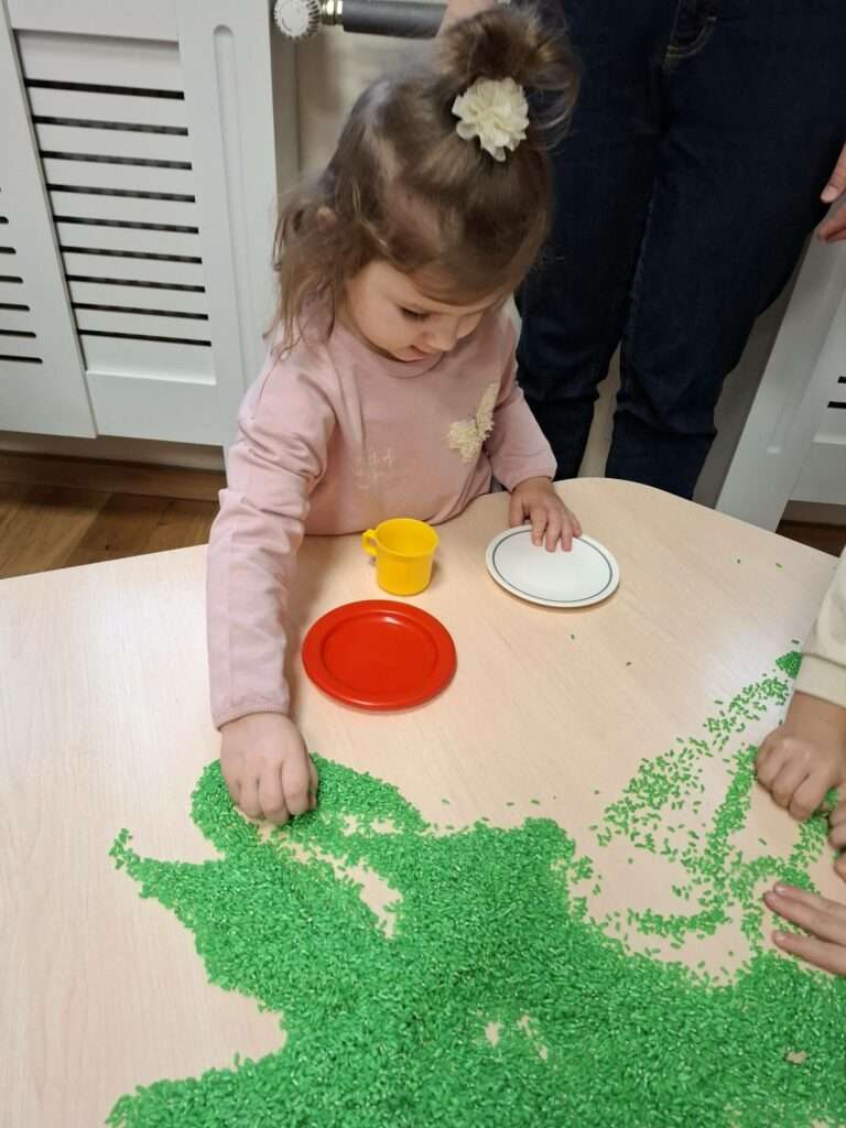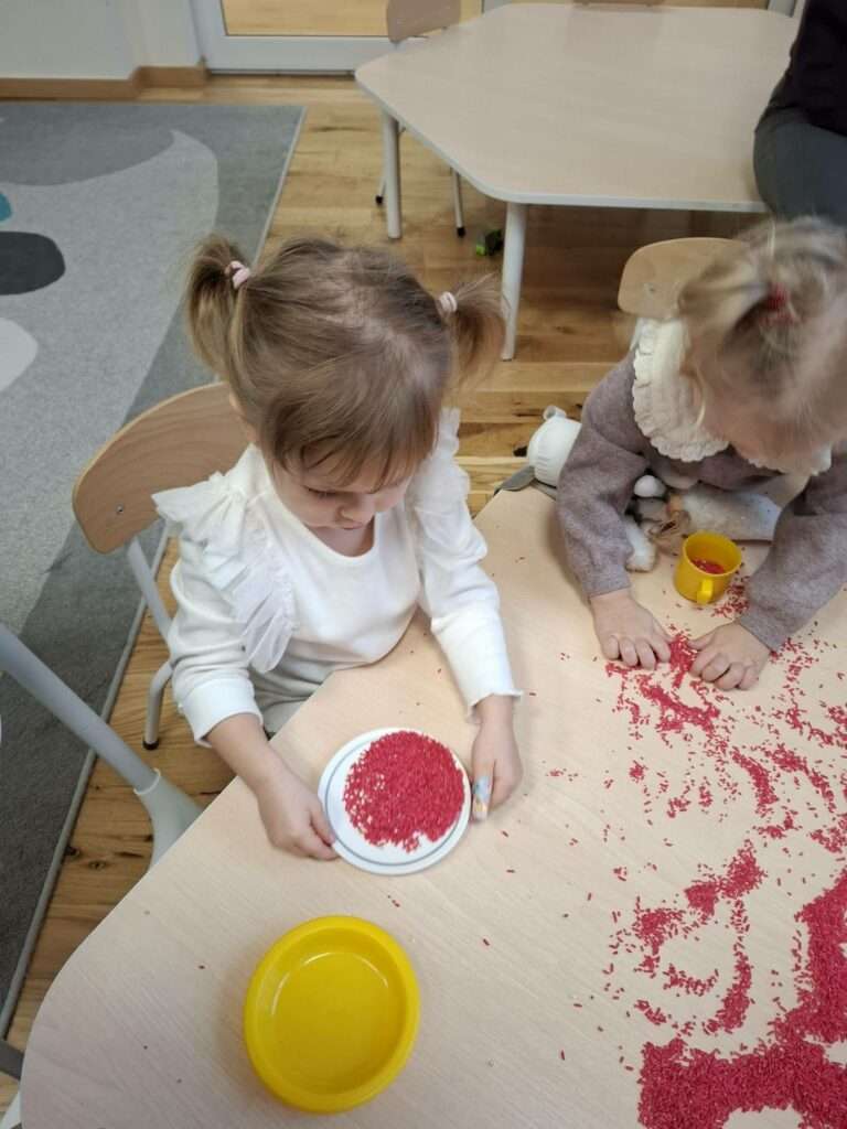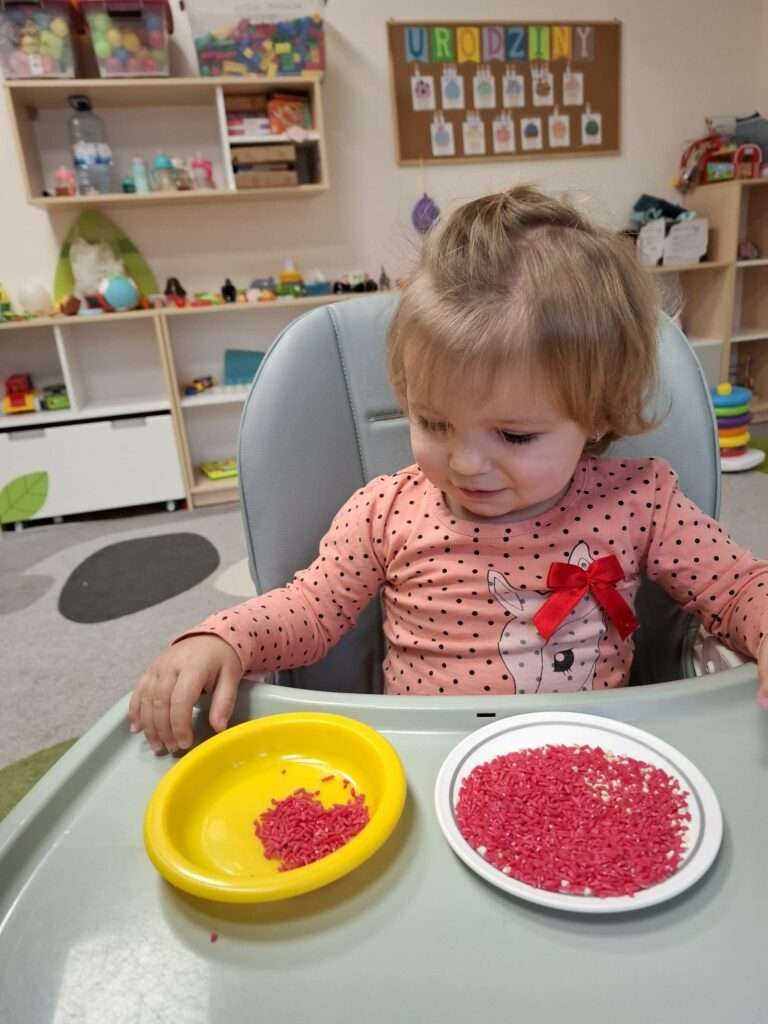 W naszej grupie zrobiło się naprawdę zimowo–świątecznie. Przygotowaliśmy sensoryczny, kolorowy ryż, który stał się głównym bohaterem naszych zabaw.