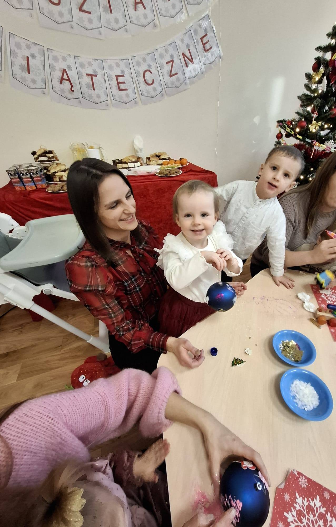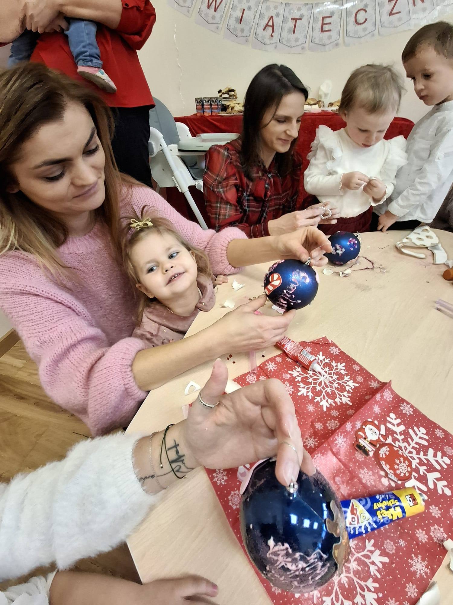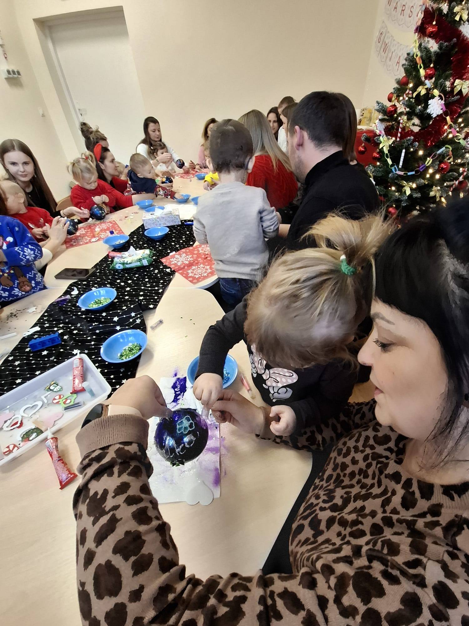 Dziś w naszej placówce odbyły się świąteczne warsztaty bożonarodzeniowe z udziałem rodziców naszych podopiecznych. Przy dźwiękach pastorałek i kolęd wspólnie dekorowaliśmy bombki choinkowe.![]()