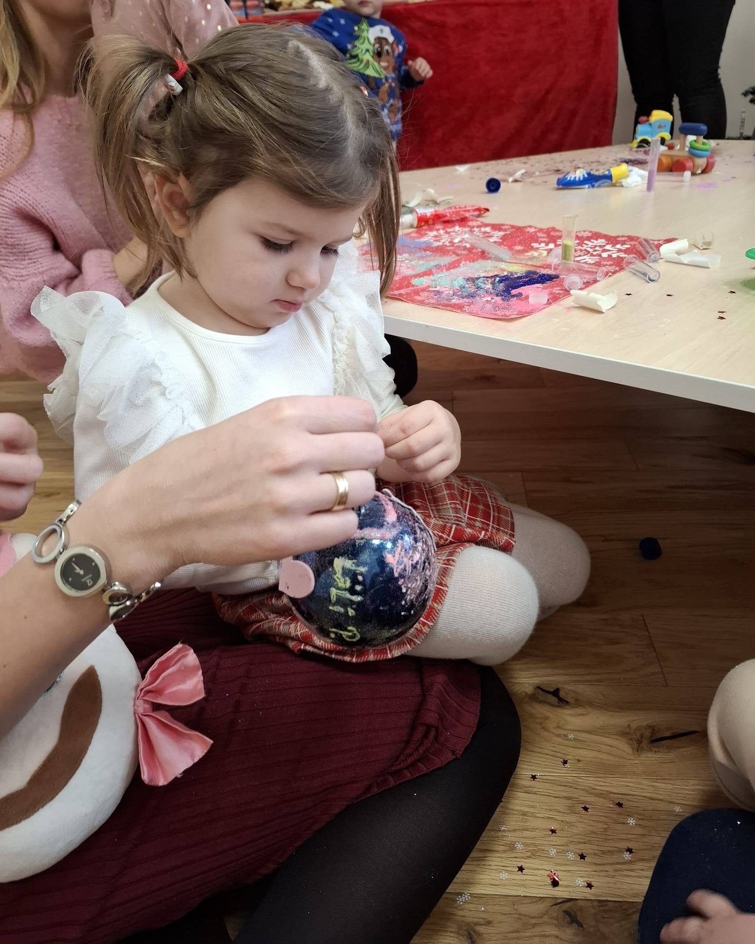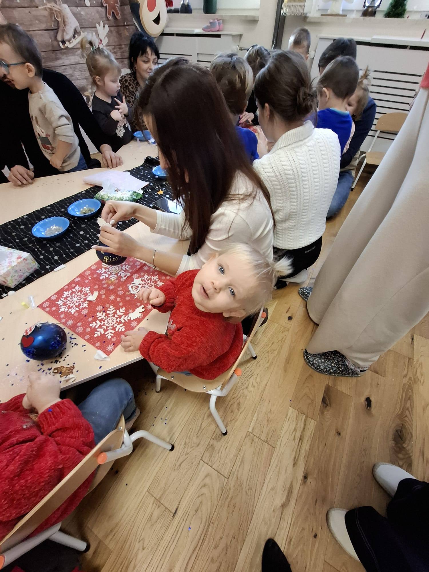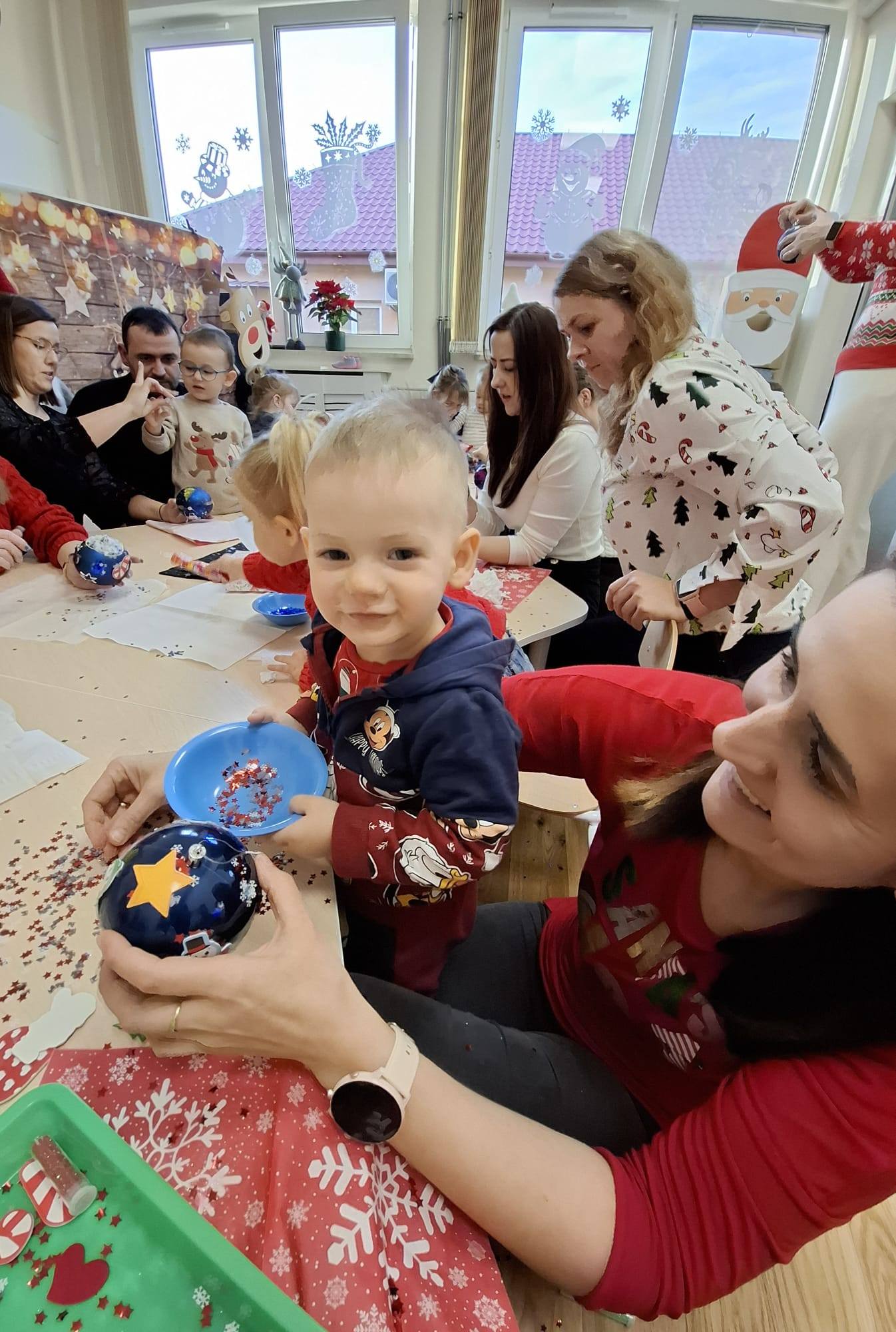 Dziś w naszej placówce odbyły się świąteczne warsztaty bożonarodzeniowe z udziałem rodziców naszych podopiecznych. Przy dźwiękach pastorałek i kolęd wspólnie dekorowaliśmy bombki choinkowe.![]()