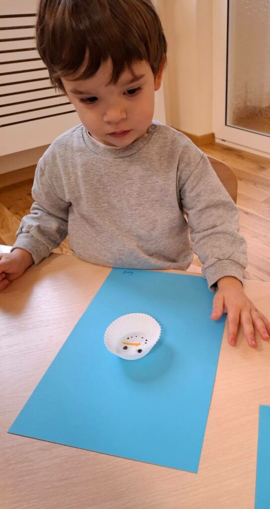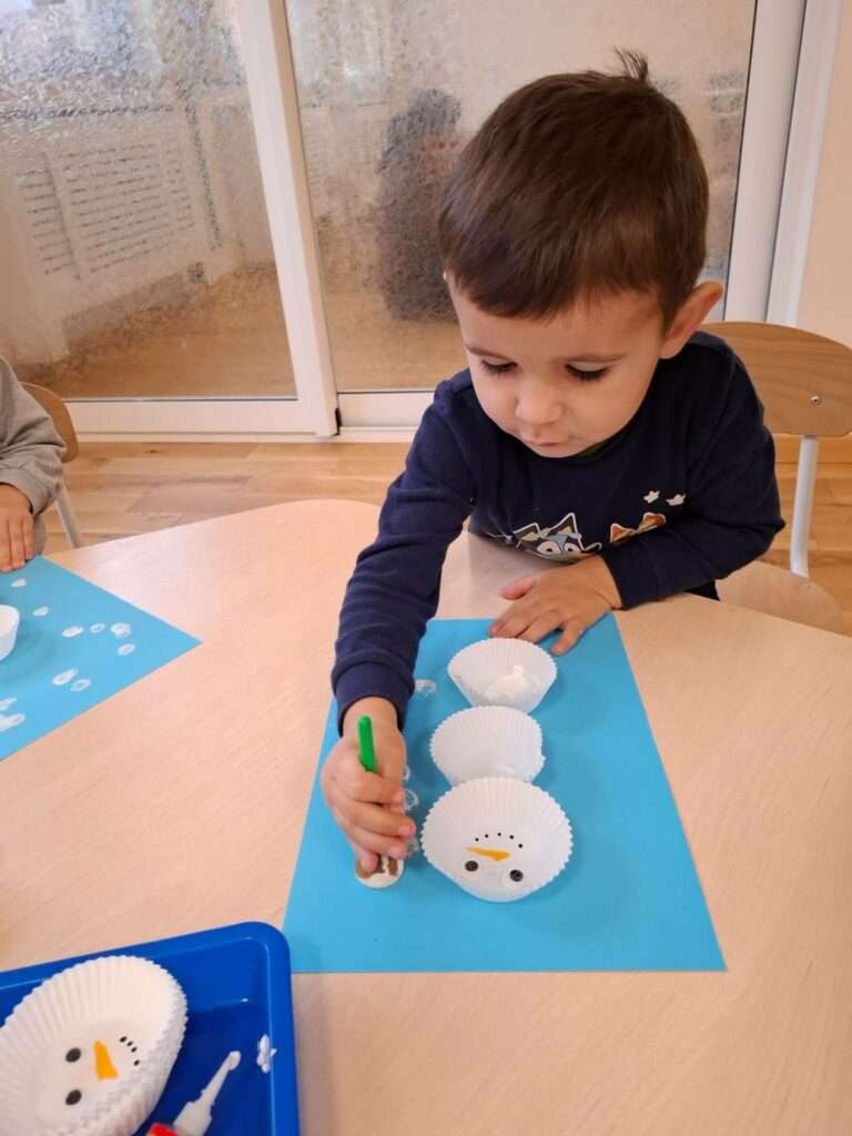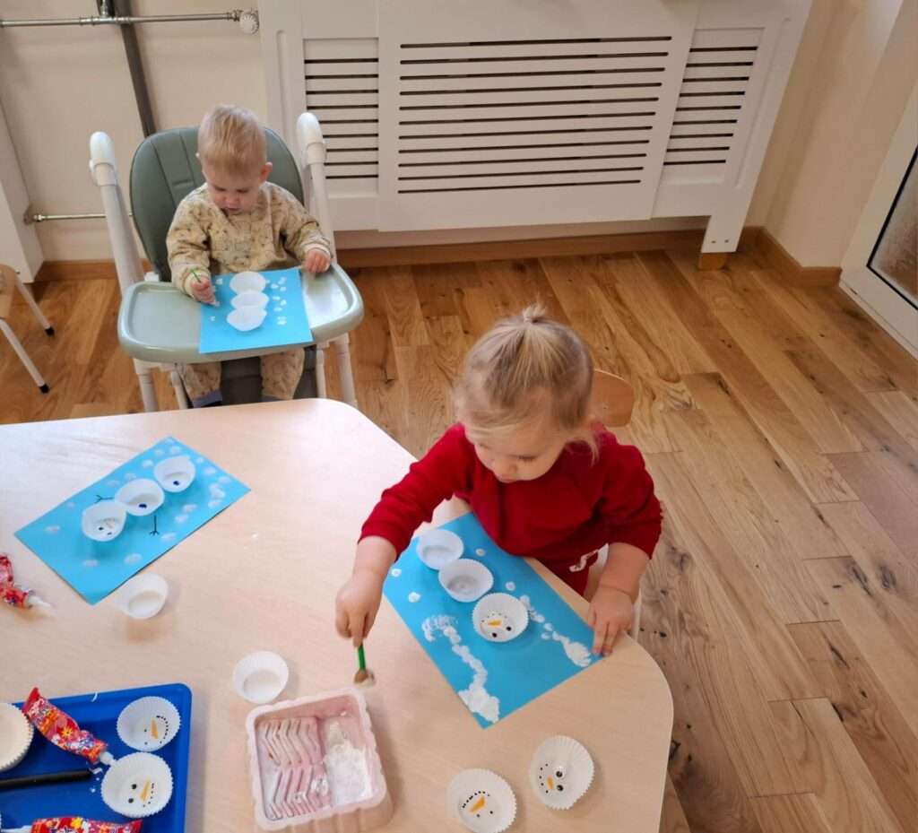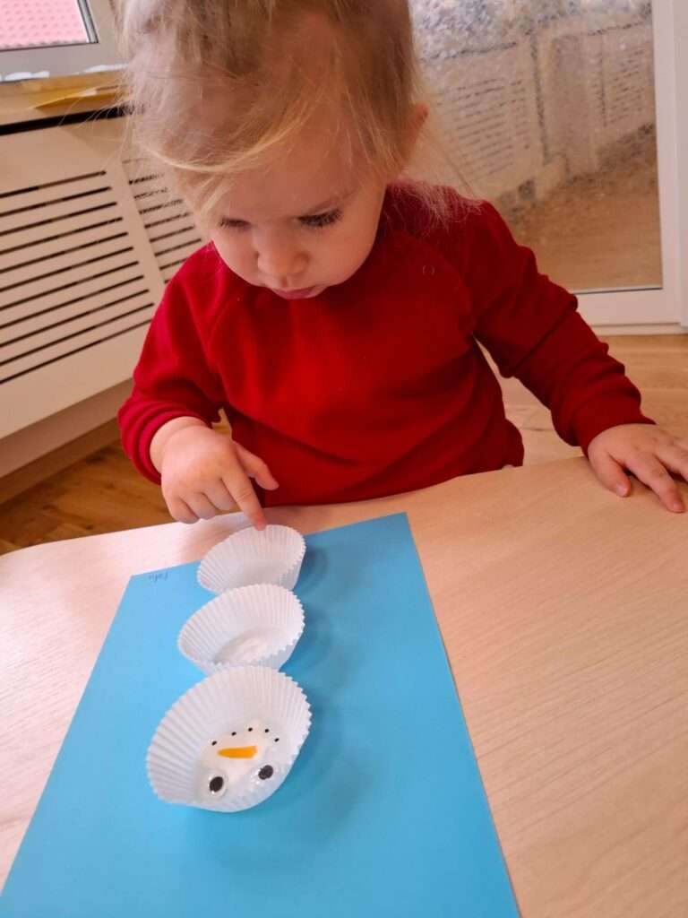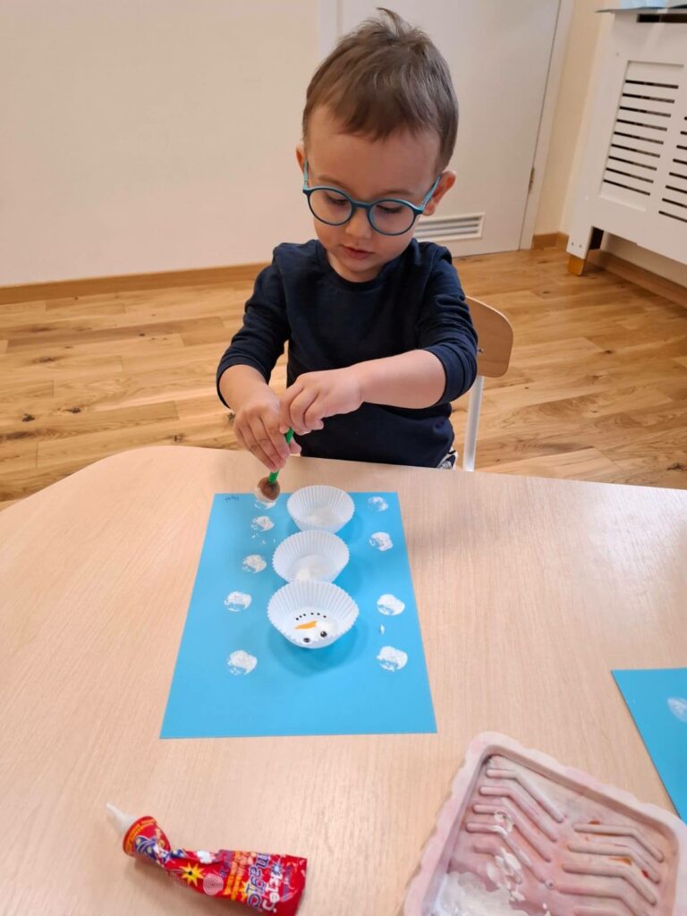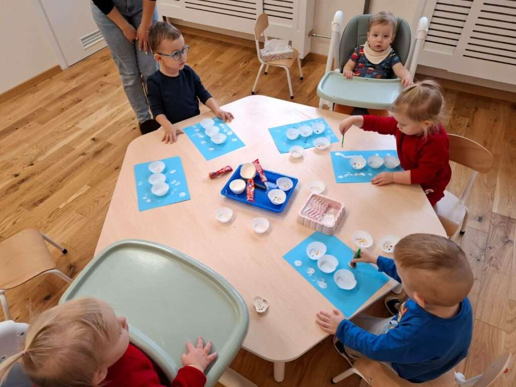 W naszym żłobku panowała prawdziwie zimowa atmosfera! Dzieci wykonały pracę plastyczną przedstawiającą bałwanka, wykorzystując papilotki do muffinek. Dodatkowo mali artyści odbijali stempelki imitujące padający śnieg, co sprawiło im mnóstwo radości.