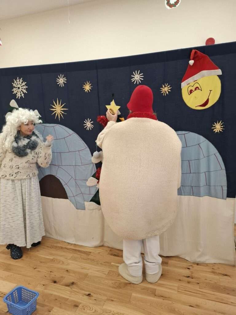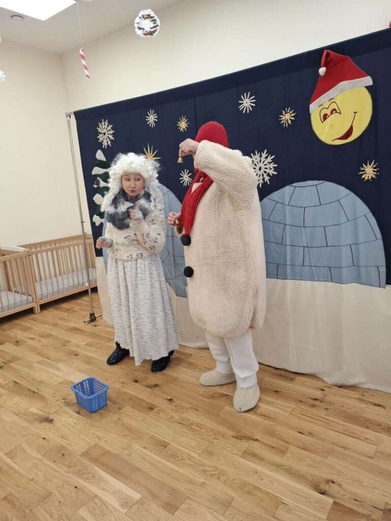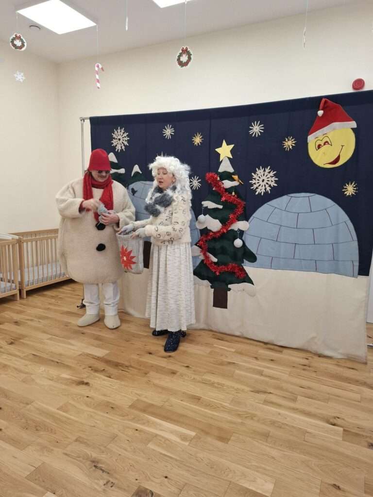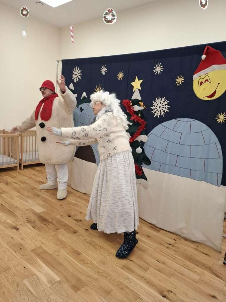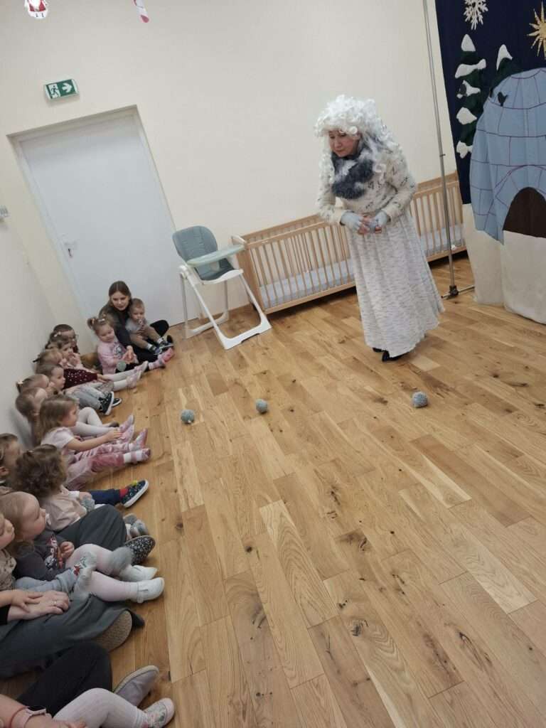Nasz żłobek odwiedził Teatrzyk KOP z Krakowa. Dzieci poznały Panią Zimę oraz bałwanka Franka. Pani Zima razem z bałwankiem ubierała choinkę, była też wesoła bitwa na śnieżki oraz wspólne śpiewy.