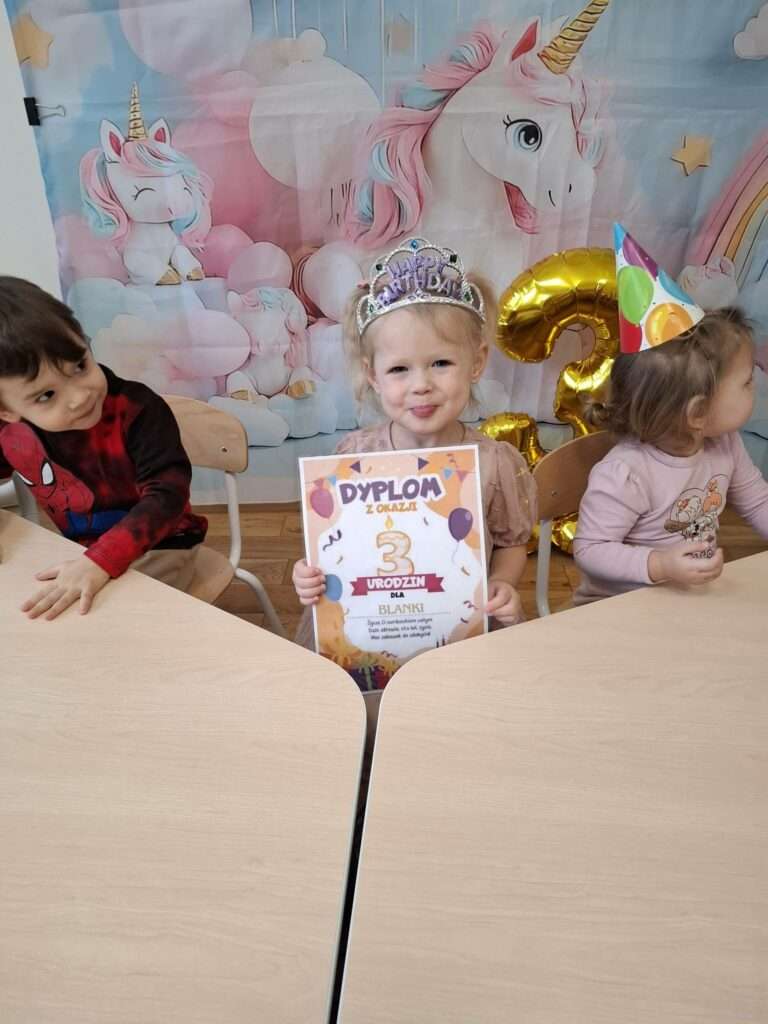 Wspólnie świętowaliśmy jej urodzinki: były tańce, zabawy, kolorowe balony oraz słodki poczęstunek. Radości i uśmiechów nie brakowało!