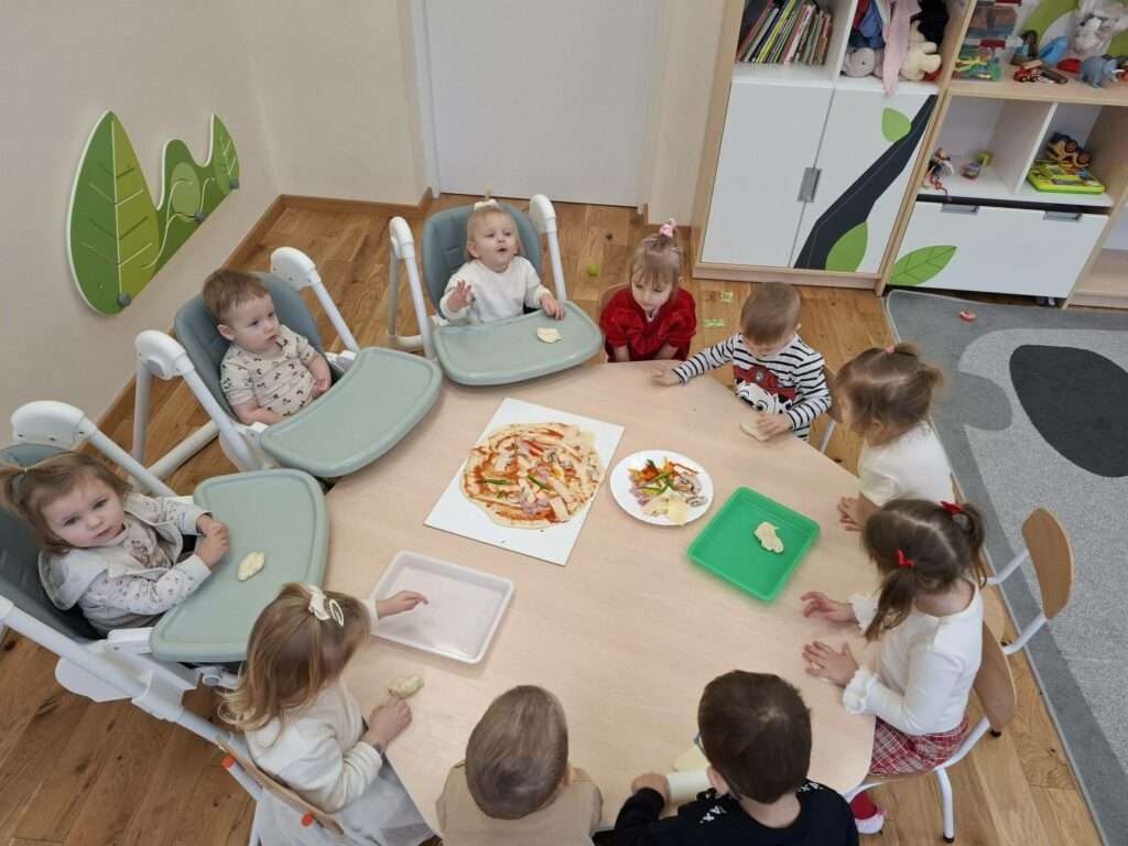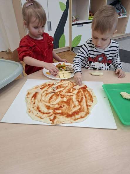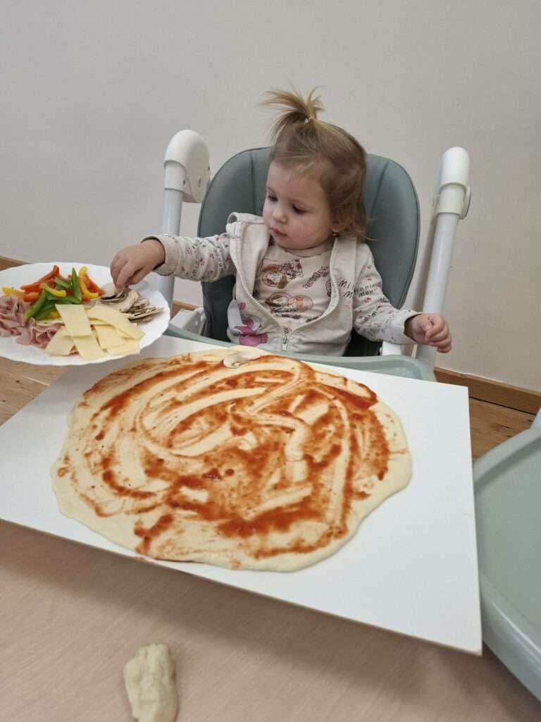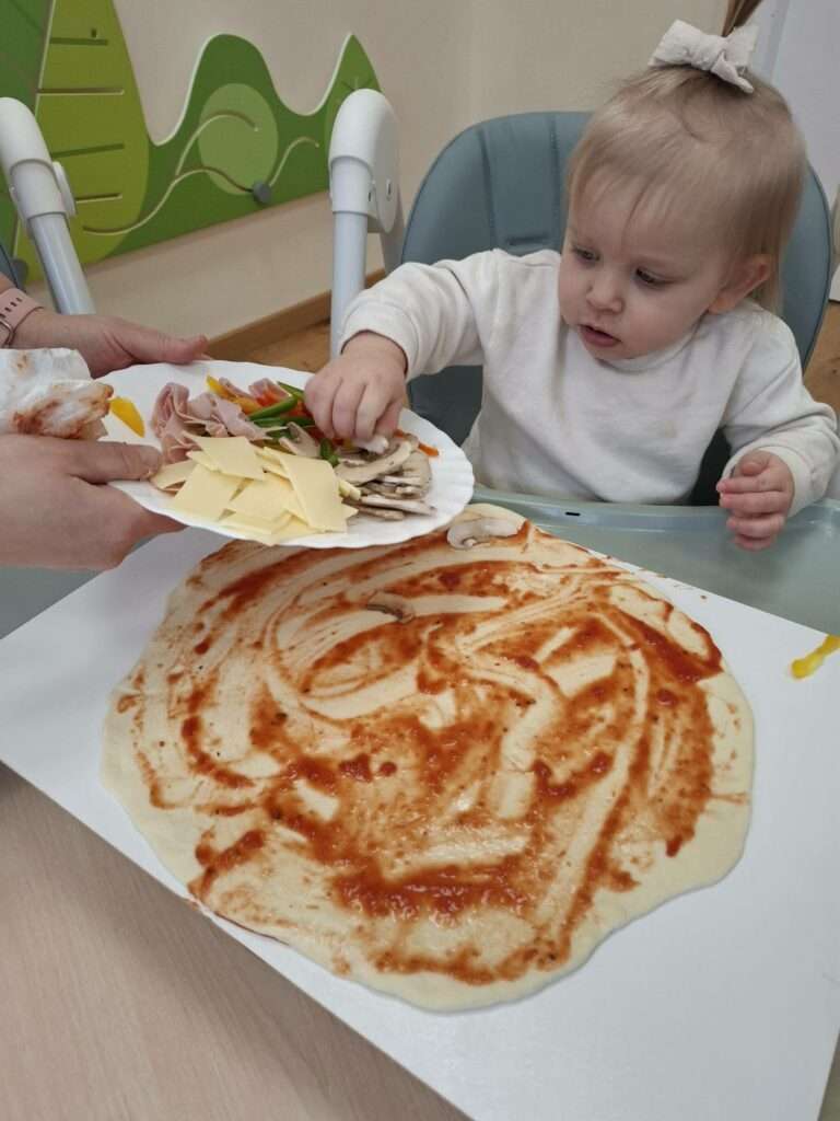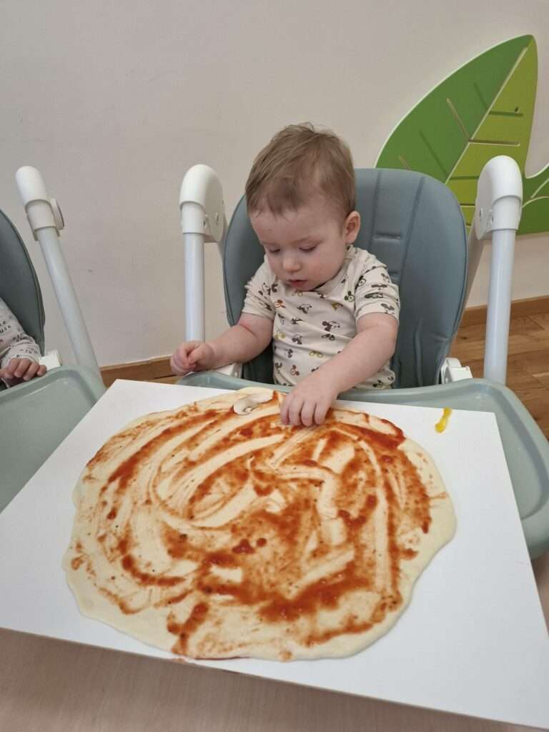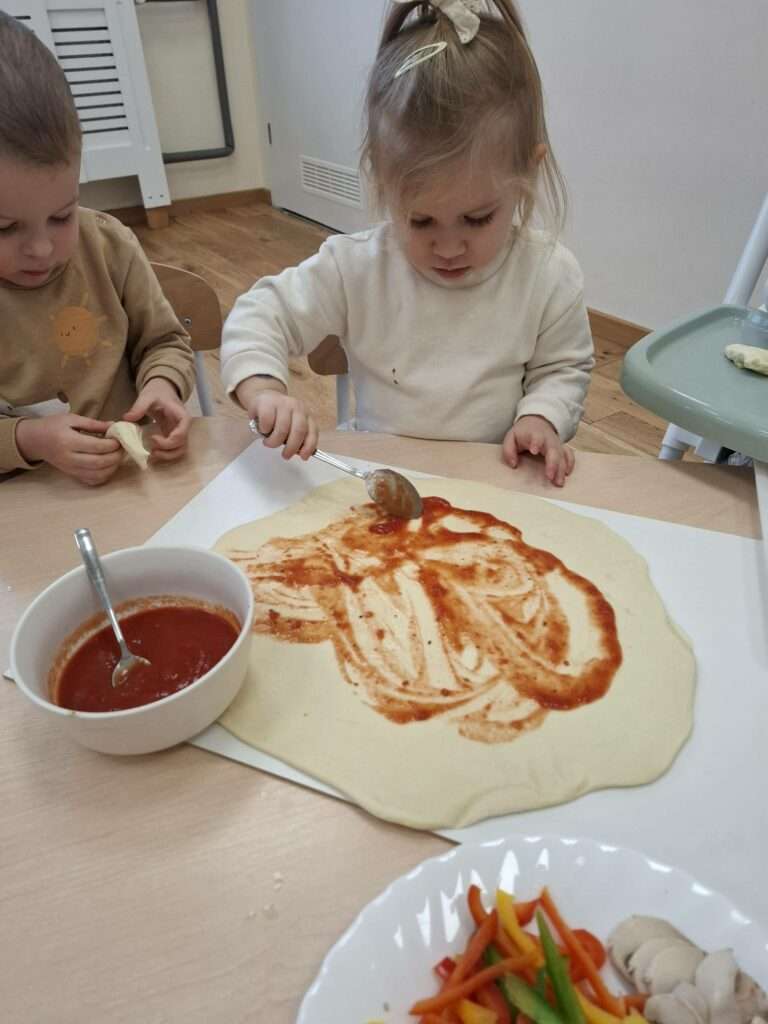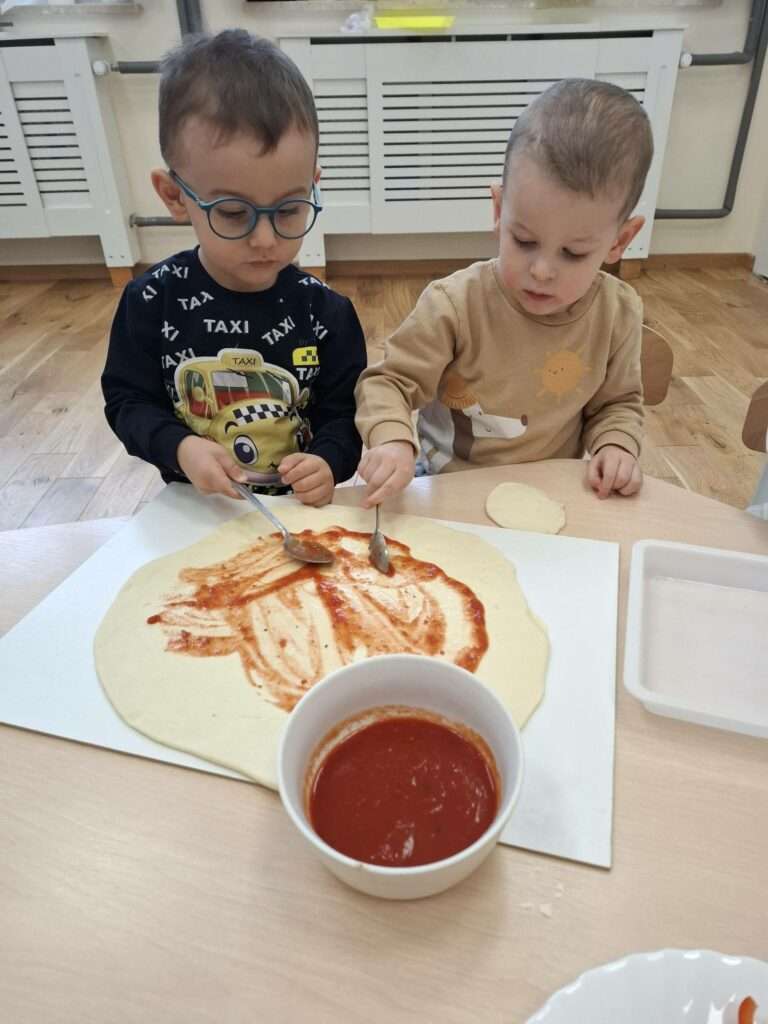 W poniedziałek w naszej sali unosił się zapach prawdziwej włoskiej przygody. Dzieci zamieniły się w małych kucharzy, by przyrządzić pizzę. Najpierw było ugniatanie mięciutkiego ciasta drożdżowego – rączki naszych dzieci pracowały, a buzie uśmiechały się od ucha do ucha.