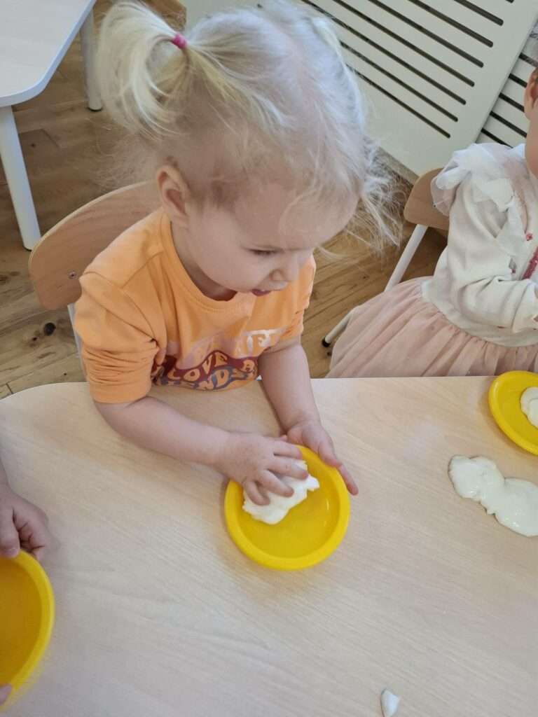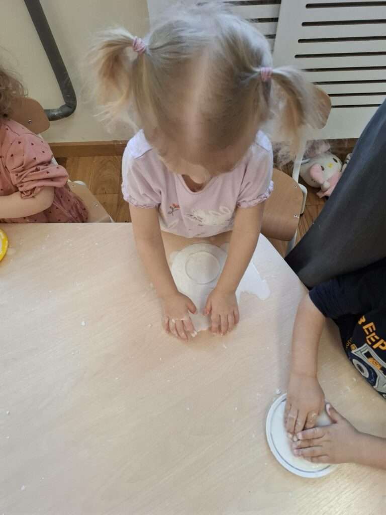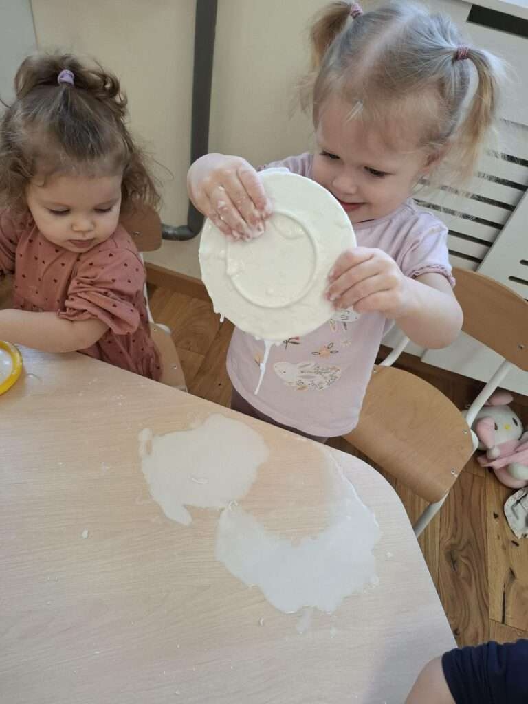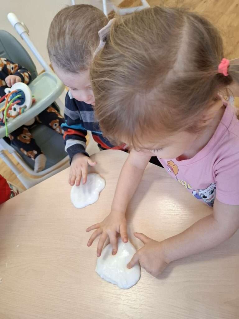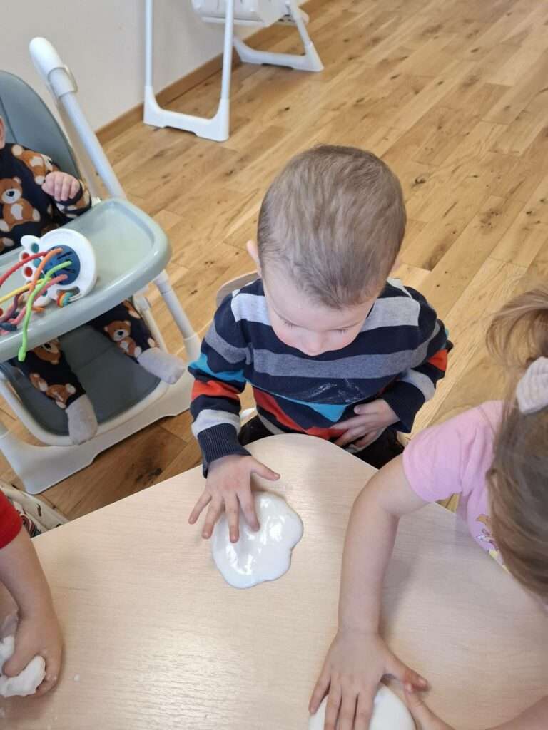 Dla dzieci była to nie tylko świetna zabawa, ale także doskonałe ćwiczenie zmysłu dotyku, małej motoryki oraz okazja do poznawania nowych faktur i reakcji. Było dużo radości, ciekawości i zachwytu nad tym, jak „magicznie” zachowuje się masa.