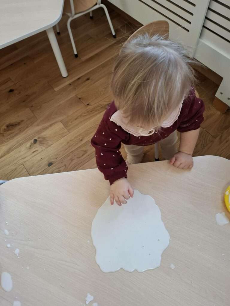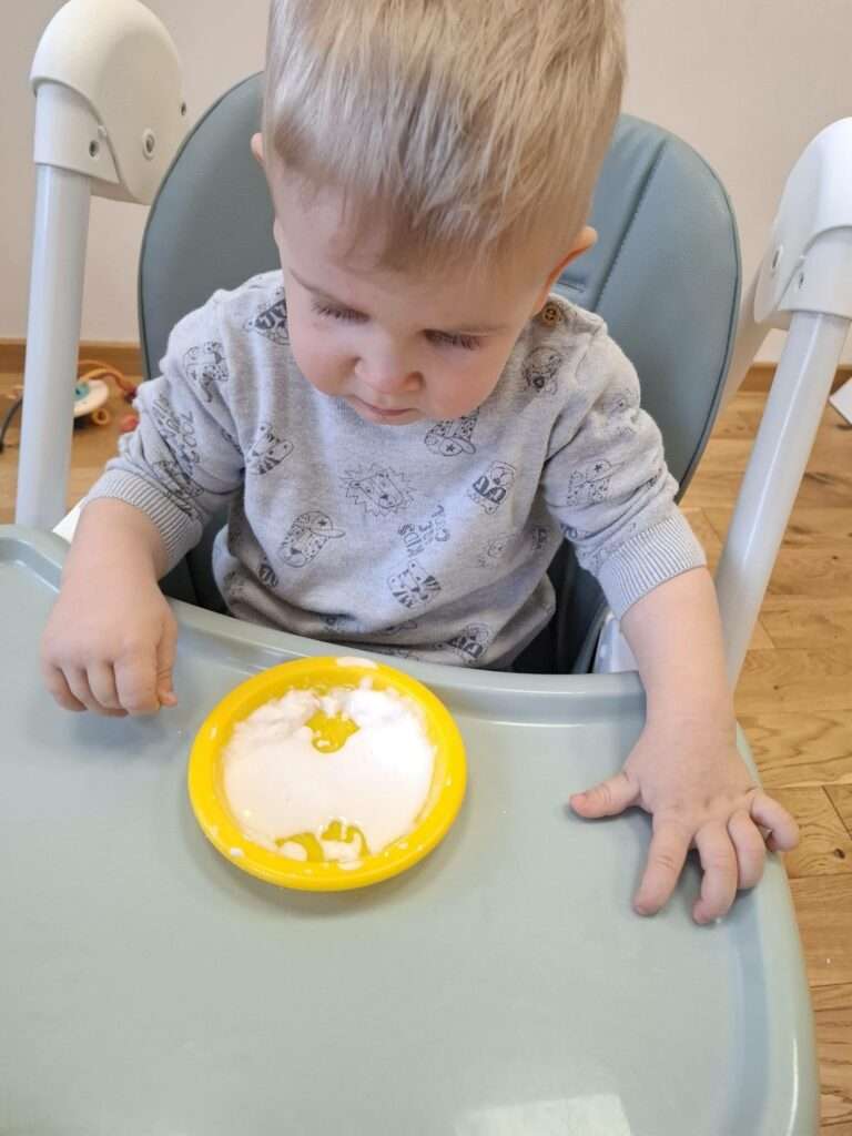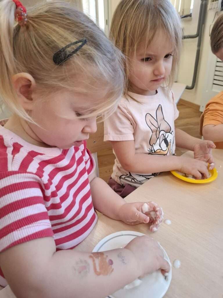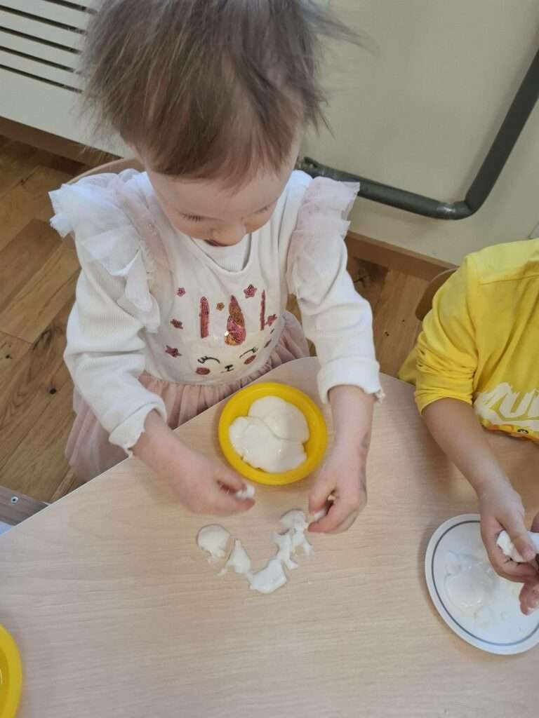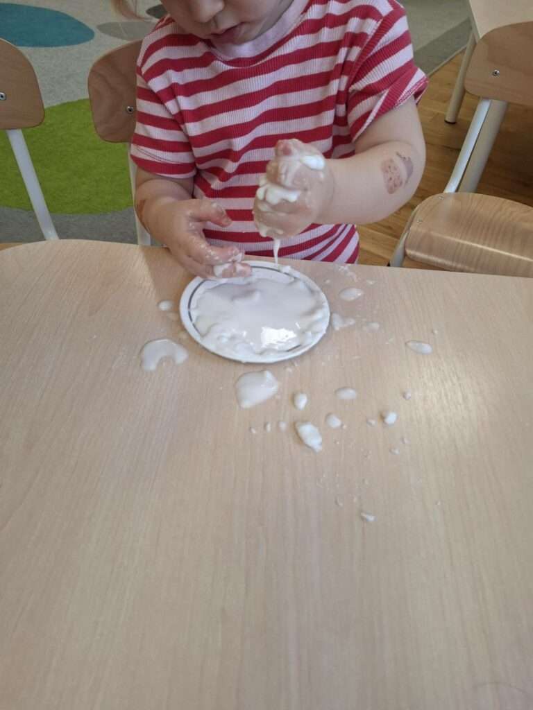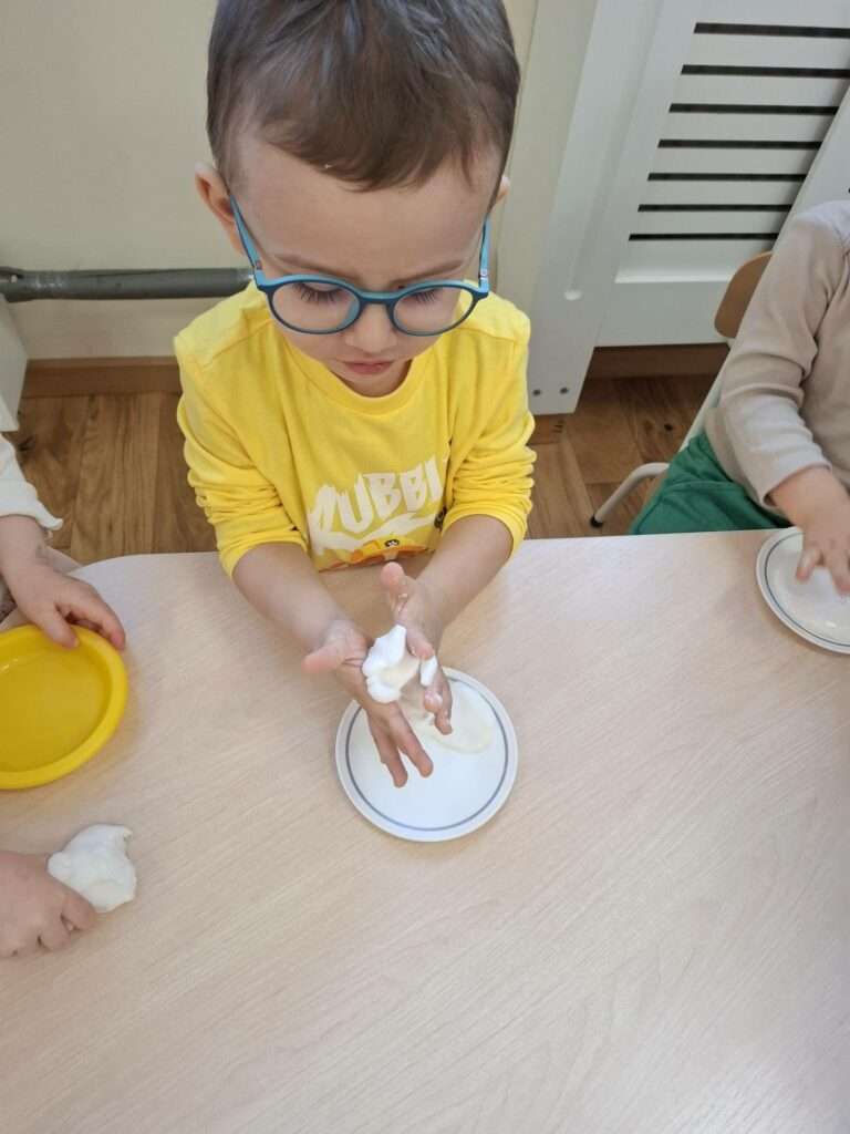 Dla dzieci była to nie tylko świetna zabawa, ale także doskonałe ćwiczenie zmysłu dotyku, małej motoryki oraz okazja do poznawania nowych faktur i reakcji. Było dużo radości, ciekawości i zachwytu nad tym, jak „magicznie” zachowuje się masa.