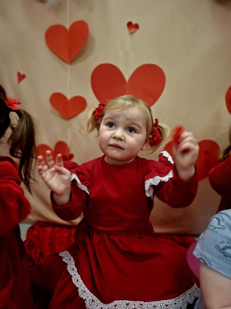 Świętowaliśmy Dzień Świętego Walentego. Nasze maluchy ubrane na czerwono z radością tworzyły serduszkowe kartki dla swoich najbliższych oraz kolegów i koleżanek.