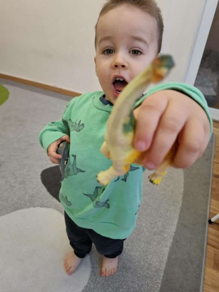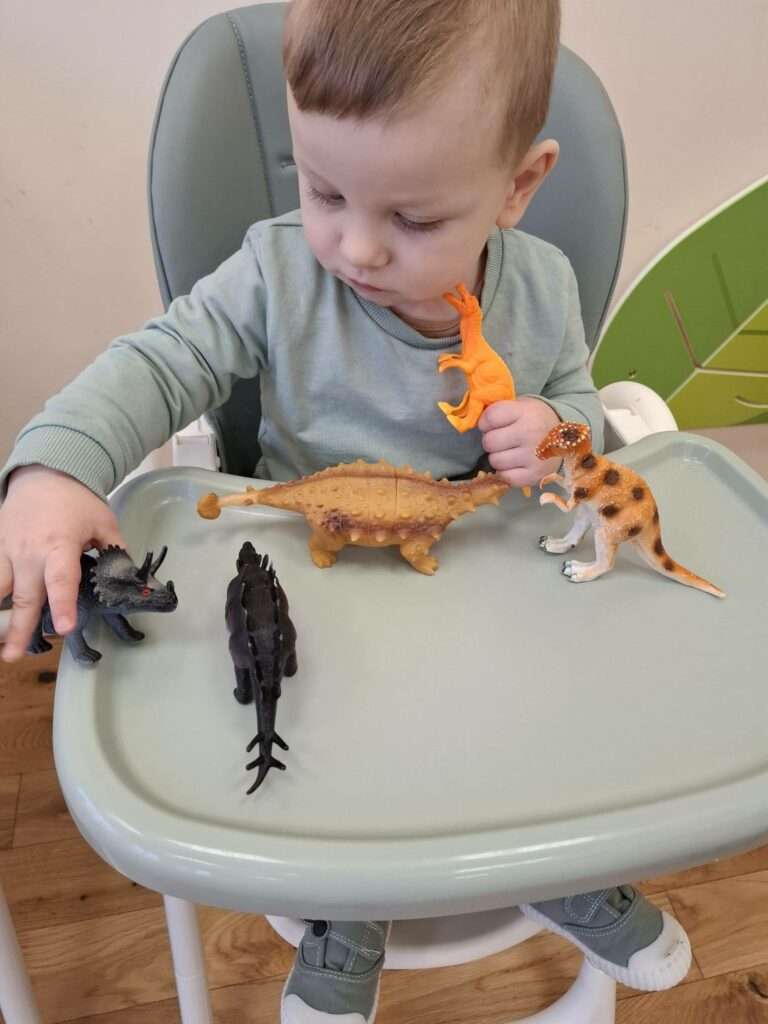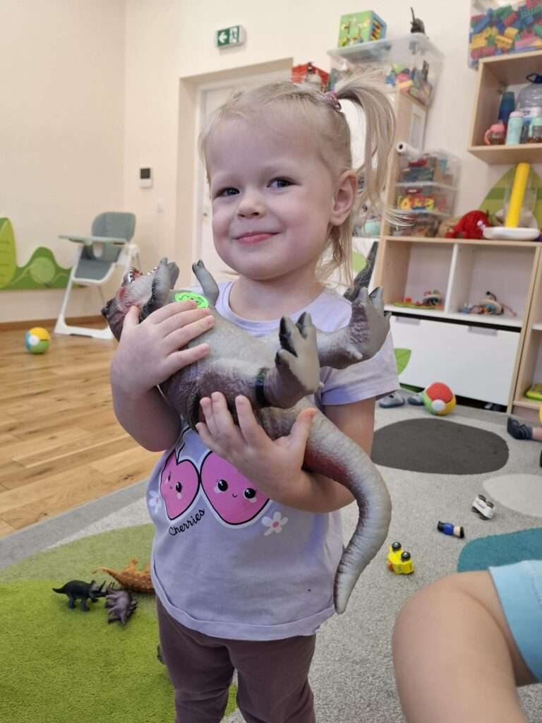Przenieśliśmy się do fascynującego świata prehistorycznych zwierząt. Dzieci poznawały różne gatunki dinozaurów, oglądały tematyczne książeczki i z ogromnym zainteresowaniem odkrywały, jak wyglądał świat miliony lat temu.