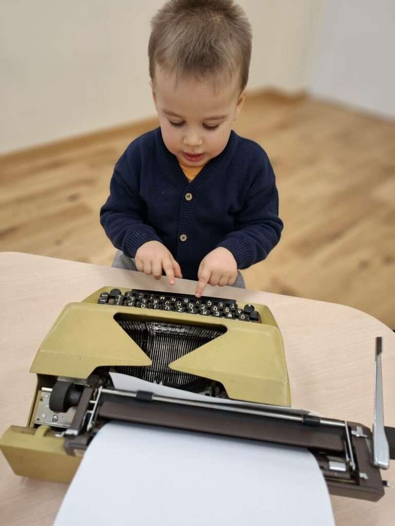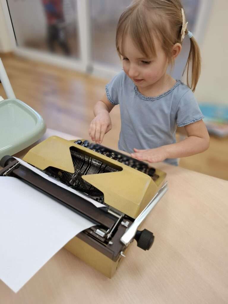 Ogromną ciekawość wzbudziły maszyny do pisania. Dzieci mogły zobaczyć, jak wyglądało pisanie w dawnych czasach, a nawet nacisnąć klawisze i usłyszeć ich charakterystyczny dźwięk.