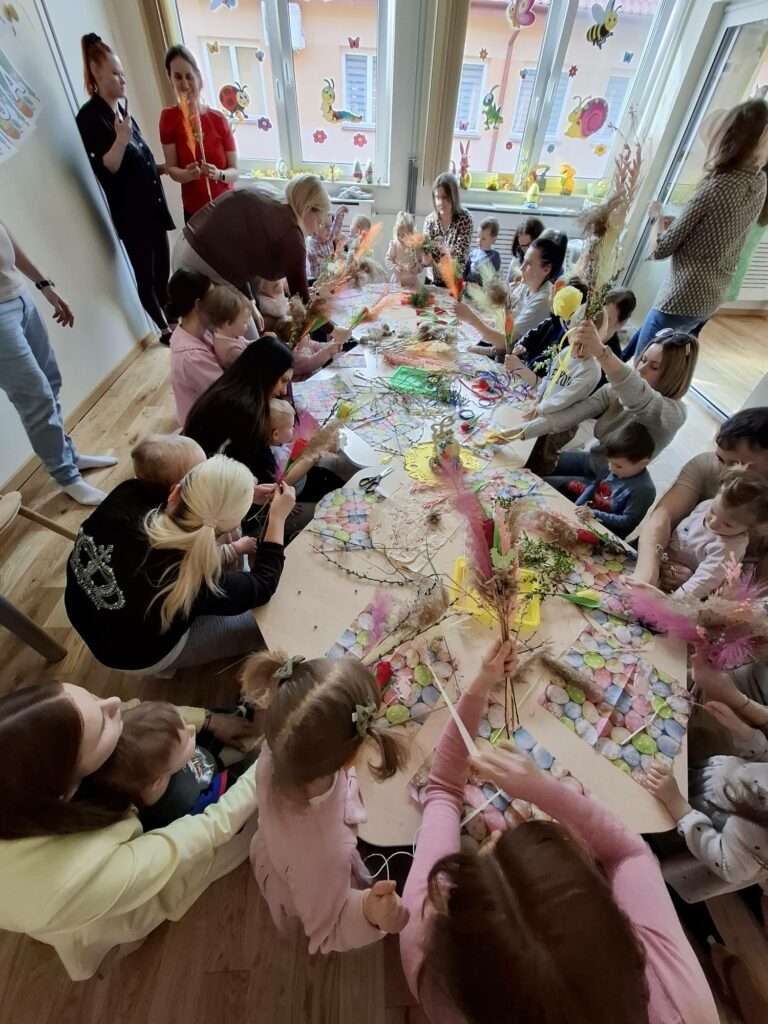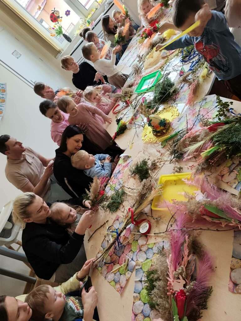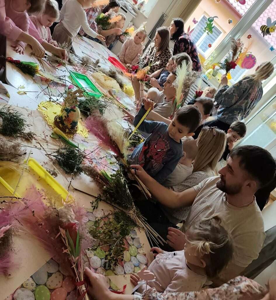 W naszym żłobku spotkaliśmy się z naszymi Rodzicami na wielkanocnych warsztatach, podczas których razem z dziećmi tworzyliśmy piękne palmy wielkanocne. Było dużo śmiechu, kreatywności i wspólnej zabawy.